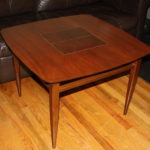 The top has a faux tile top design, the “tiles” are actually wood. It has gorgeous tapered legs.