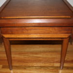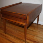 Lane Side End Table – A Beautiful Angle or Two… This is a mid century modern side end table by Lane. It is made of solid wood, has gorgeous streamlined angles, tapered legs, and one dovetailed drawer that pulls out easily. Dimensions: 29″D x 21″W x 21″H *SOLD* Leave a Reply Cancel replyYour email address will not be published. Required fields are marked *Comment * Name * Email * Website Save my name, email, and website in this browser for the next time I comment.