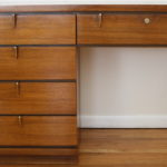 Mid Century Modern Desk with Brass Hook Drawer Pulls