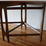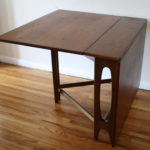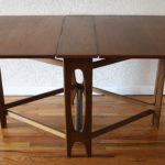 This is a Danish mid century modern gateleg dining table. It is made of solid wood and both sides of the table fold down for modified utility and easy storage. The design of the table has beautiful interlocking legs.