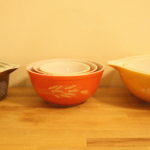 Vintage Pyrex Bowl Sets – Funky and Functional These are 3 sets of vintage Pyrex bowls. Each individual set has 3 bowls that fit inside of each other, perfect for storing. Great condition and awesome designs! *All sets are SOLD* Leave a Reply Cancel replyYour email address will not be published. Required fields are marked *Comment * Name * Email * Website Save my name, email, and website in this browser for the next time I comment.