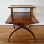 Mid Century Modern Tiered Side Table with Beautiful Arched Legs This is a mid century modern side end table that is made of solid wood. It has two tiers, a juxtaposed wood design, and gorgeous arched legs. Dimensions: 22″W x 28″D x 24″H *SOLD* Leave a Reply Cancel replyYour email address will not be published. Required fields are marked *Comment * Name * Email * Website Save my name, email, and website in this browser for the next time I comment.
