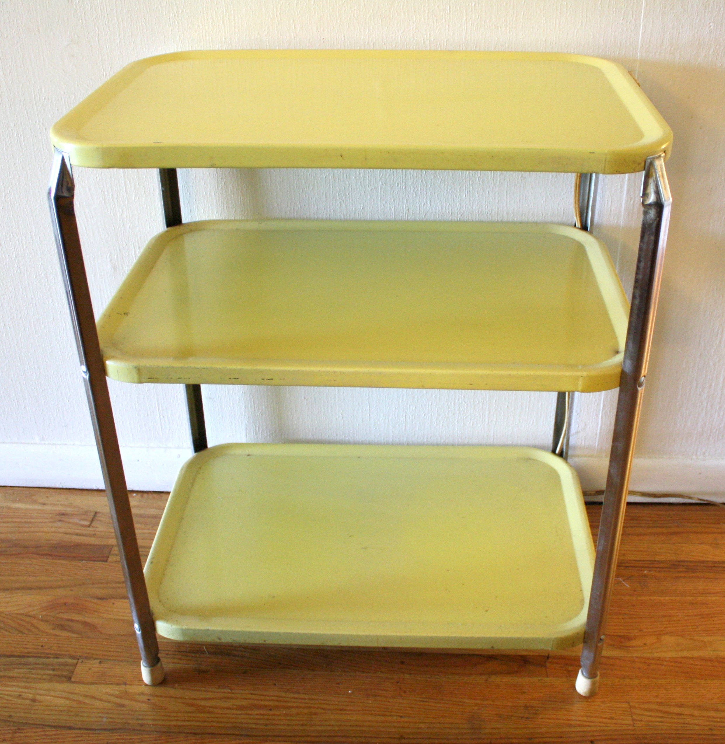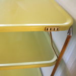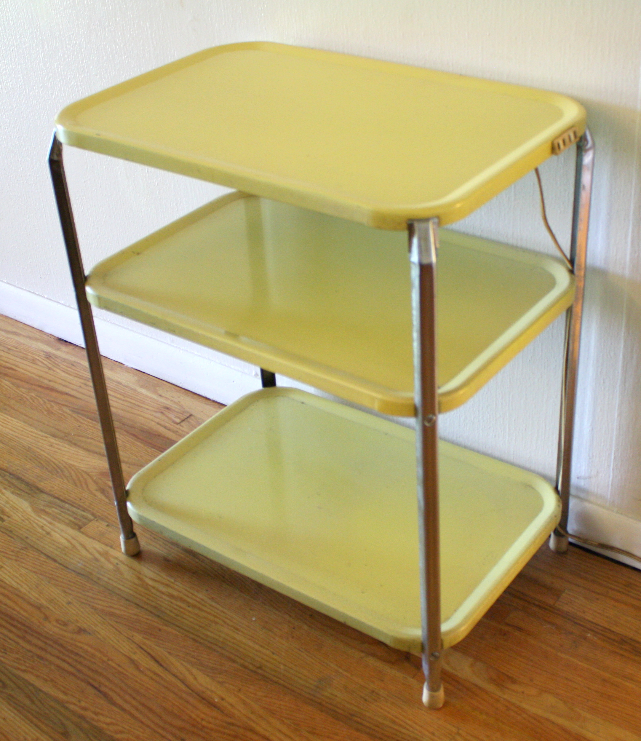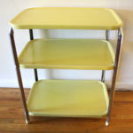 Retro 3 Tier Shelf Metal Carts These are 2 retro metal 3 tier shelf units in a very cheerful lemon yellow and vibrant apple red. They are in great condition, with original paint, and has an operating built in outlet. Dimensions: 23.5″W x 15″D x 28.5″H Both units are sold. Leave a Reply Cancel replyYour email address will not be published. Required fields are marked *Comment * Name * Email * Website Save my name, email, and website in this browser for the next time I comment.