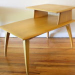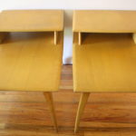 Pair of Heywood Wakefield Two Tiered Side Tables This is a pair of mid century modern Heywood Wakefield side tables in great condition. They are solid wood, have two tiers, and beautiful arched legs. Dimensions: 19.5″W x 30″D x 20.5″H *SOLD* Leave a Reply Cancel replyYour email address will not be published. Required fields are marked *Comment * Name * Email * Website Save my name, email, and website in this browser for the next time I comment.