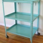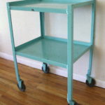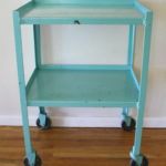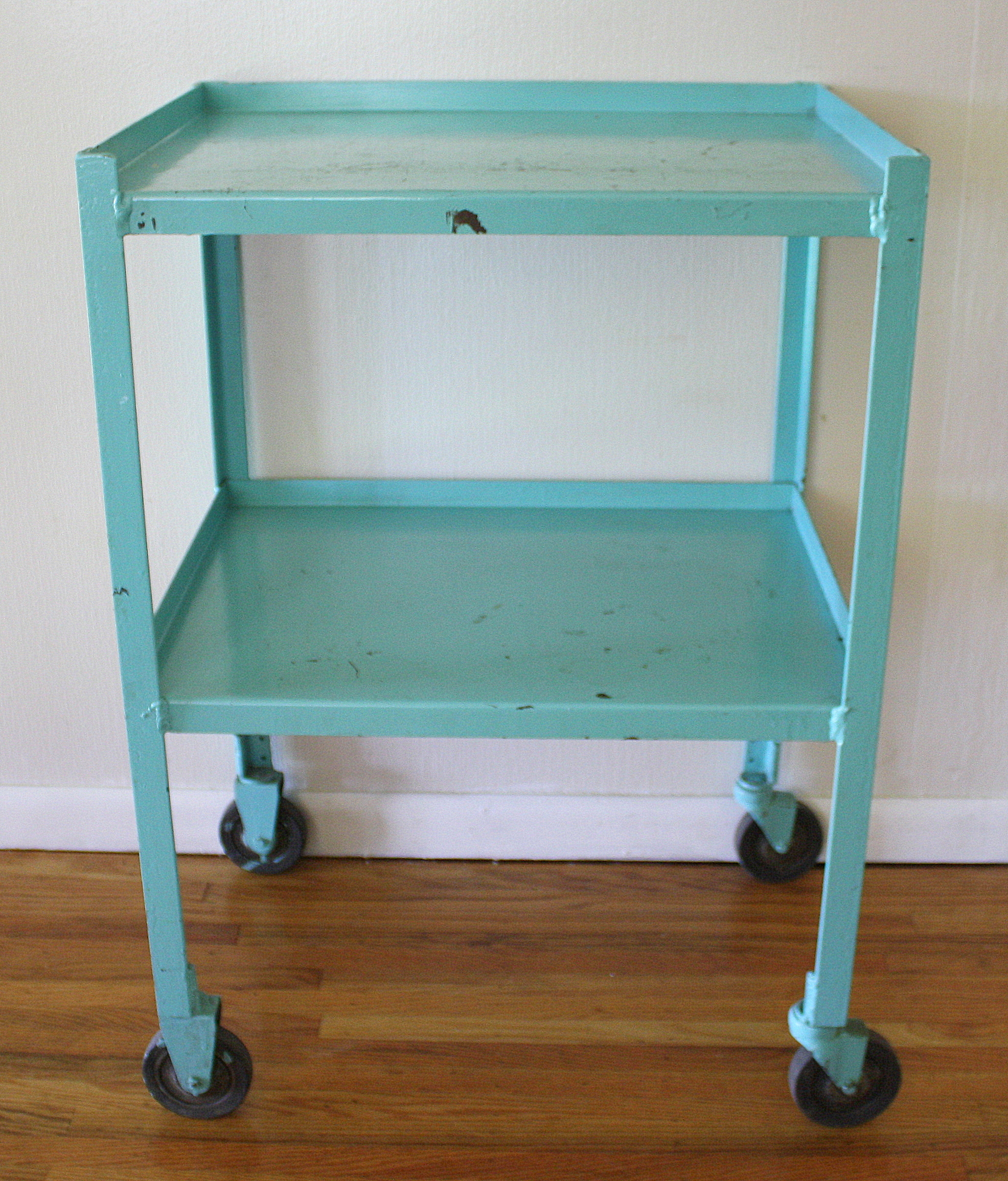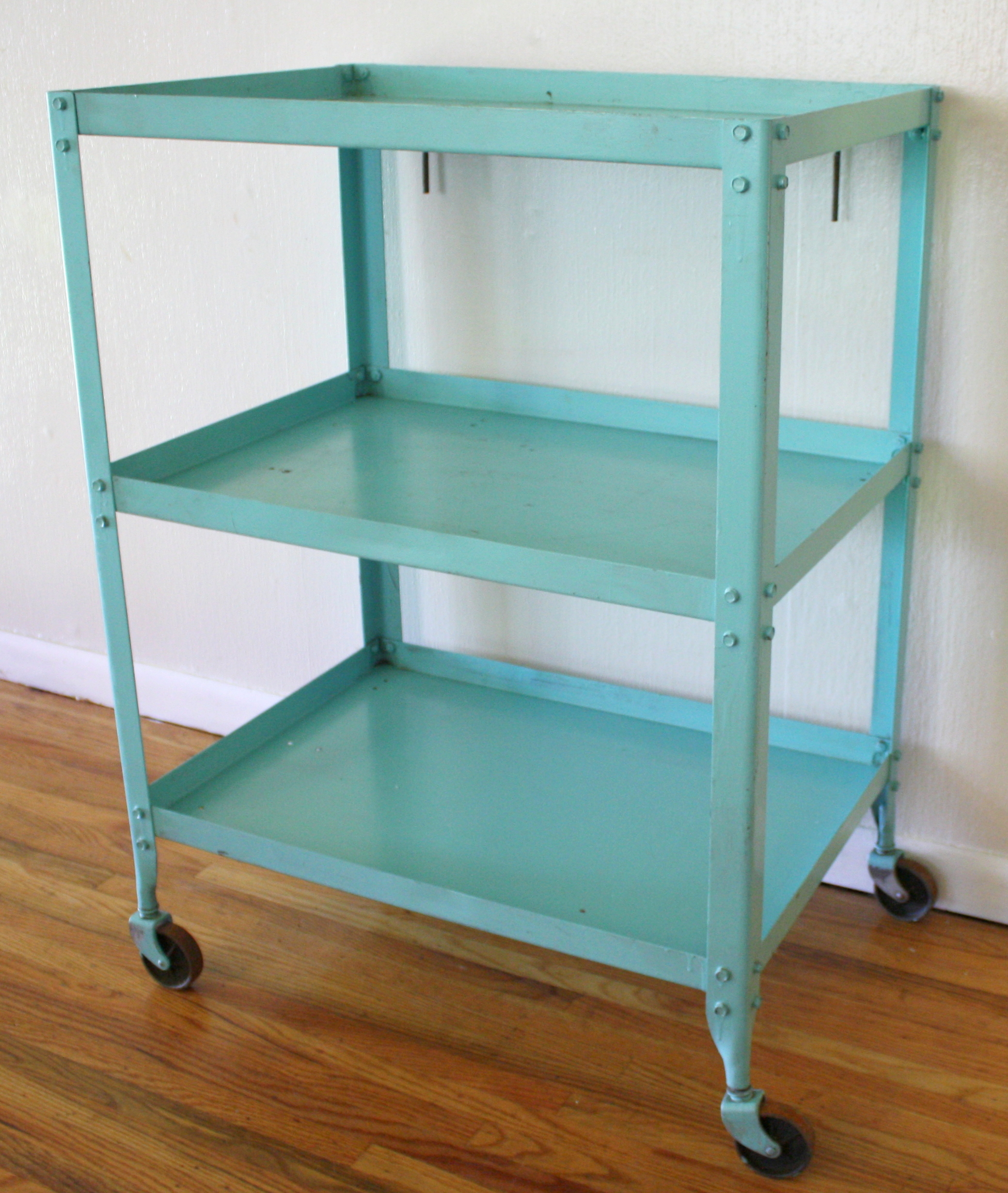 These are 2 vintage industrial carts in aqua. They are made of steel and roll on wheels. Super versatile and a great vibrant color.