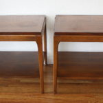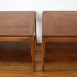 This is a pair of mid century modern side end tables by Lane.  They are made of solid wood, have a lower shelf and a great classic design.