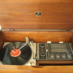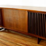 This is a mid century modern stereo record player by RCA Victrola. It is made of solid wood, has a great design and sound. It has RCA record player and stereo components.