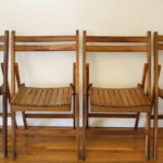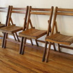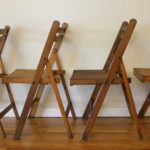 This is a set of 4 antique folding chairs. They are made of solid wood and have a great slatted design. They have great lines, are comfortable to sit in and space efficient.