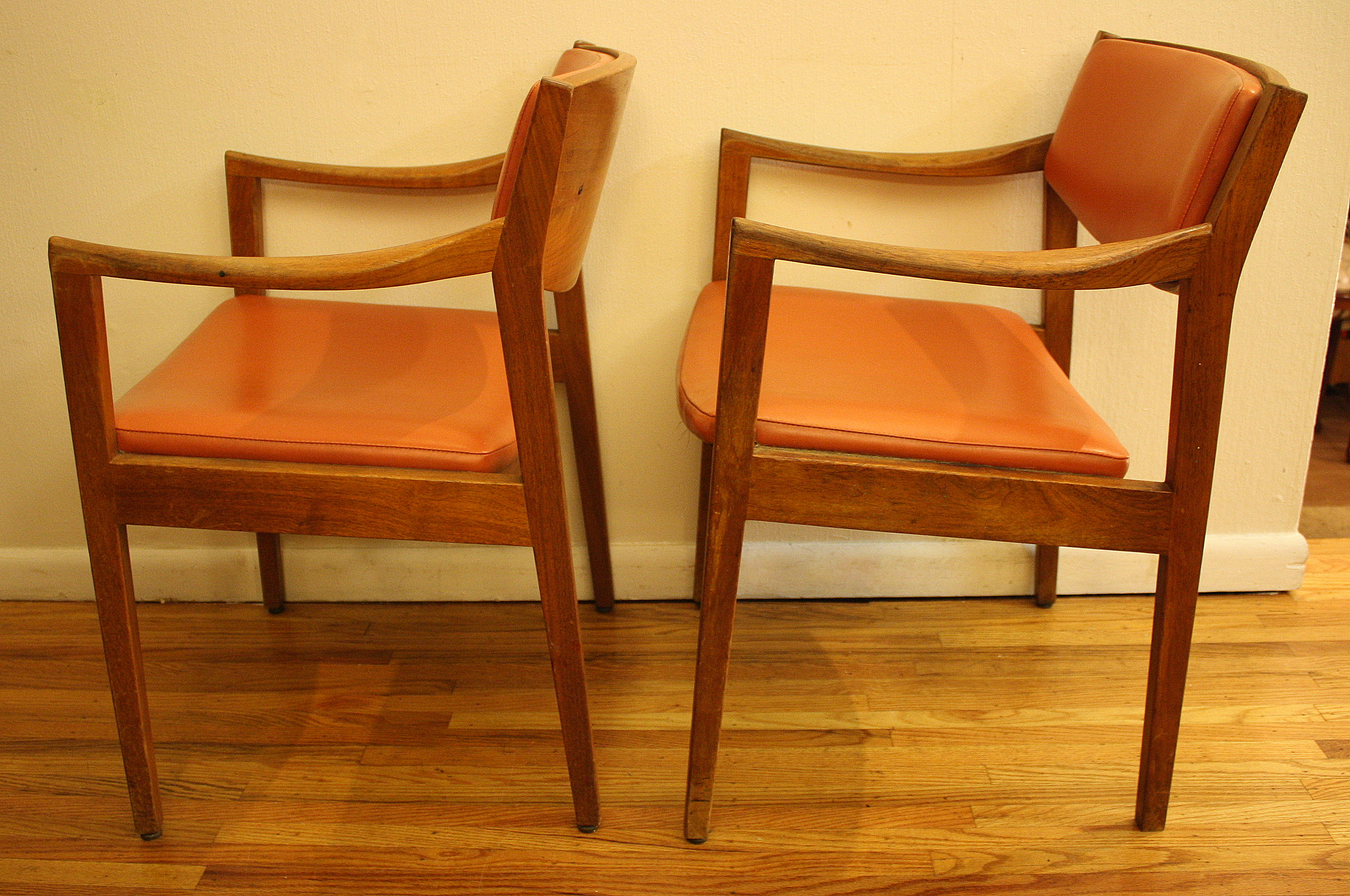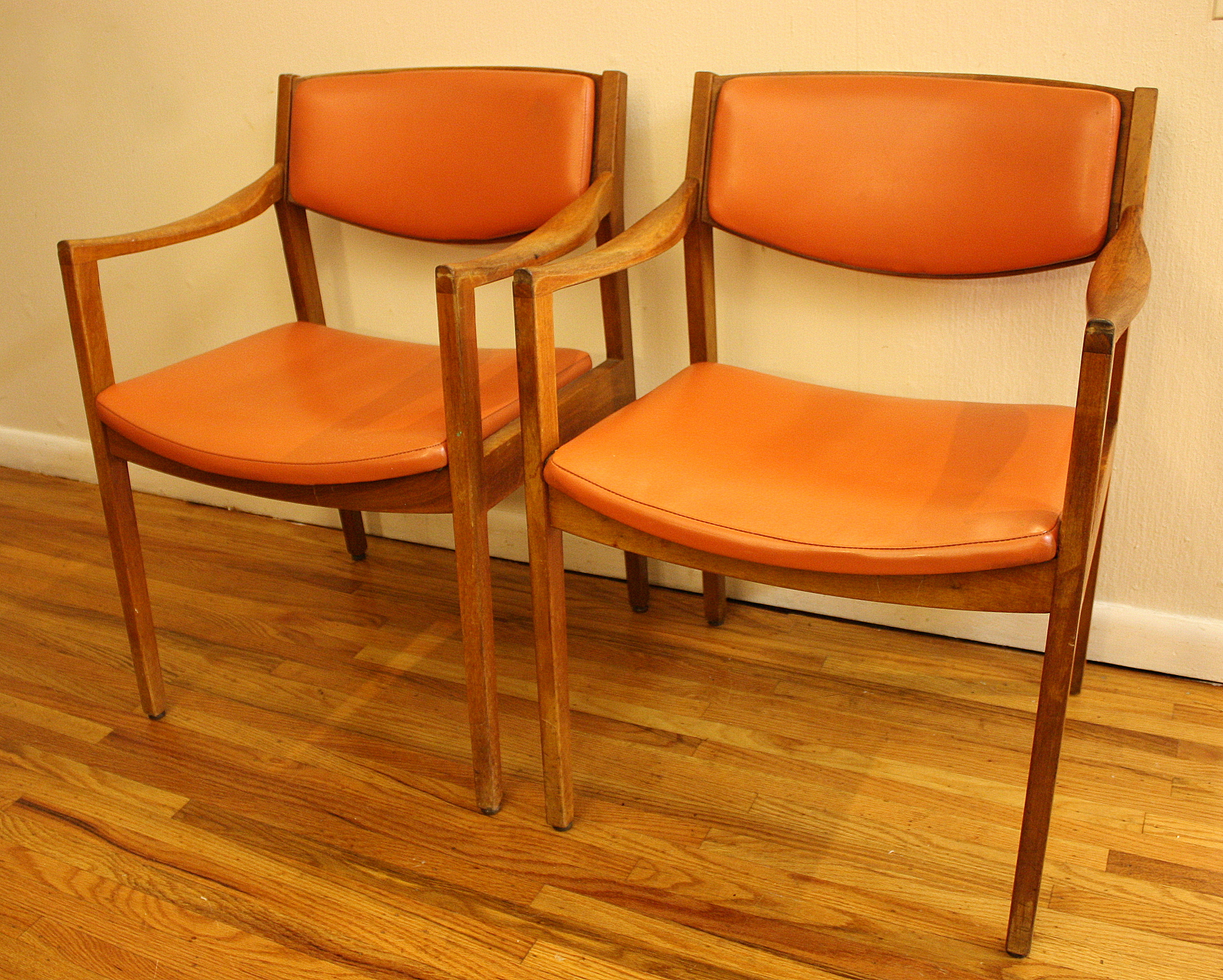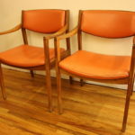 Mid Century Modern Gunlocke Chairs These are mid century modern Gunlocke chairs. The frames are solid wood and they are upholstered in naugahyde. There are two beautiful sculpted designs, and each chair can be sold separately. All chairs are sold. Leave a Reply Cancel replyYour email address will not be published. Required fields are marked *Comment * Name * Email * Website Save my name, email, and website in this browser for the next time I comment.