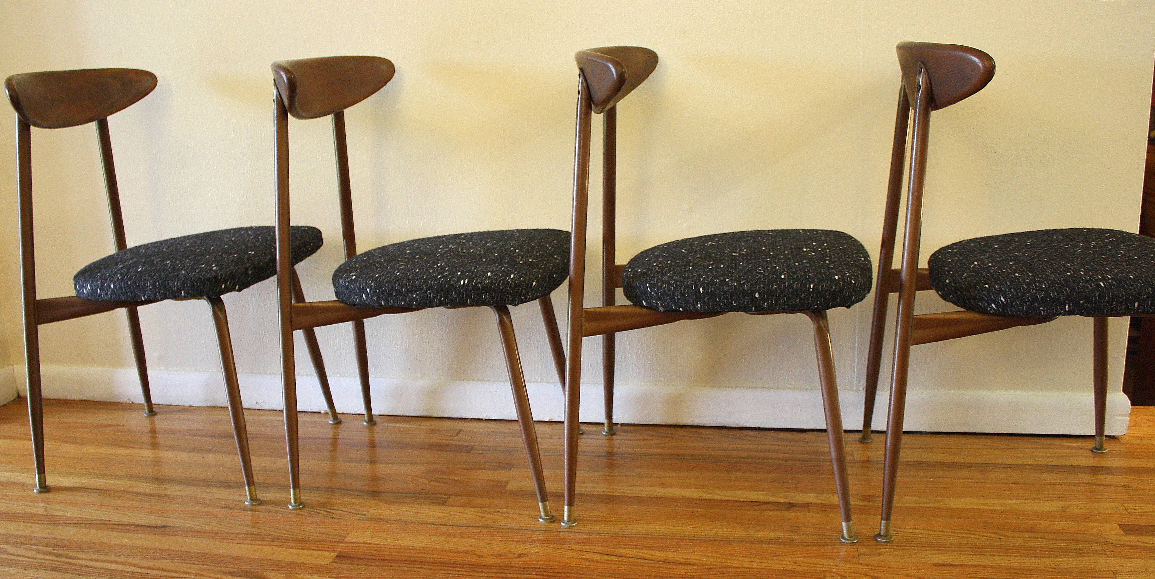 Mid Century Modern VIKO Chairs This is a set of 4 mid century modern chairs by Viko. It has mcm solid wood curved backs and metal frames. Great lines, with new retro patterened tweed seats. Dimensions: seat width: 17″, seat depth: 16.5″ seat height: 17″, back height: 31″ *SOLD* Leave a Reply Cancel replyYour email address will not be published. Required fields are marked *Comment * Name * Email * Website Save my name, email, and website in this browser for the next time I comment.