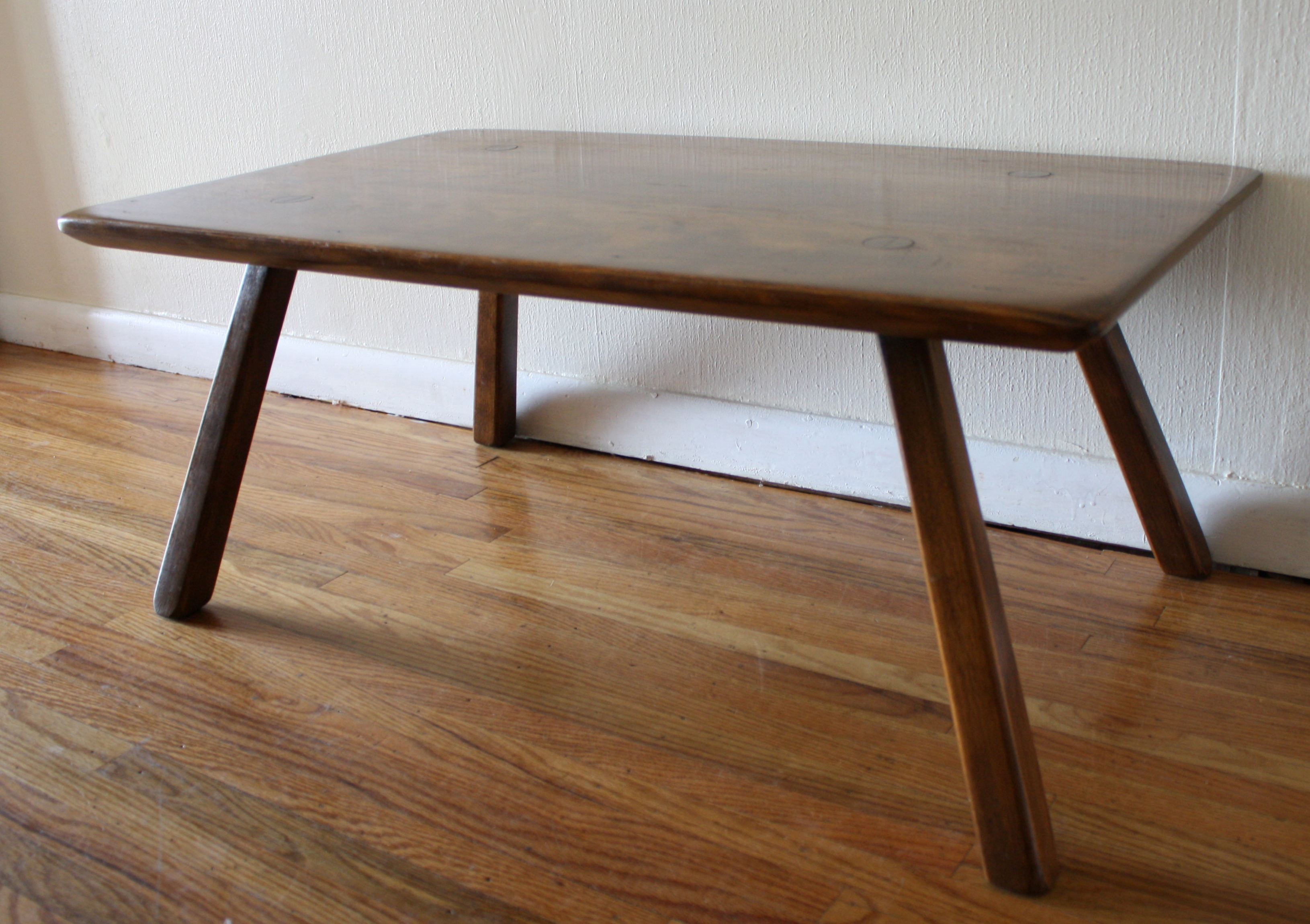 Cushman Coffee Table This is a beautiful mid century coffee table by Cushman. Solid wood, with a cut peg design on top, it has a great streamlined design, and splayed legs. Dimensions: 35.5″W x 20.5″D x 15″H *SOLD* Leave a Reply Cancel replyYour email address will not be published. Required fields are marked *Comment * Name * Email * Website Save my name, email, and website in this browser for the next time I comment.