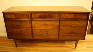 mcm credenza with burled top drawers