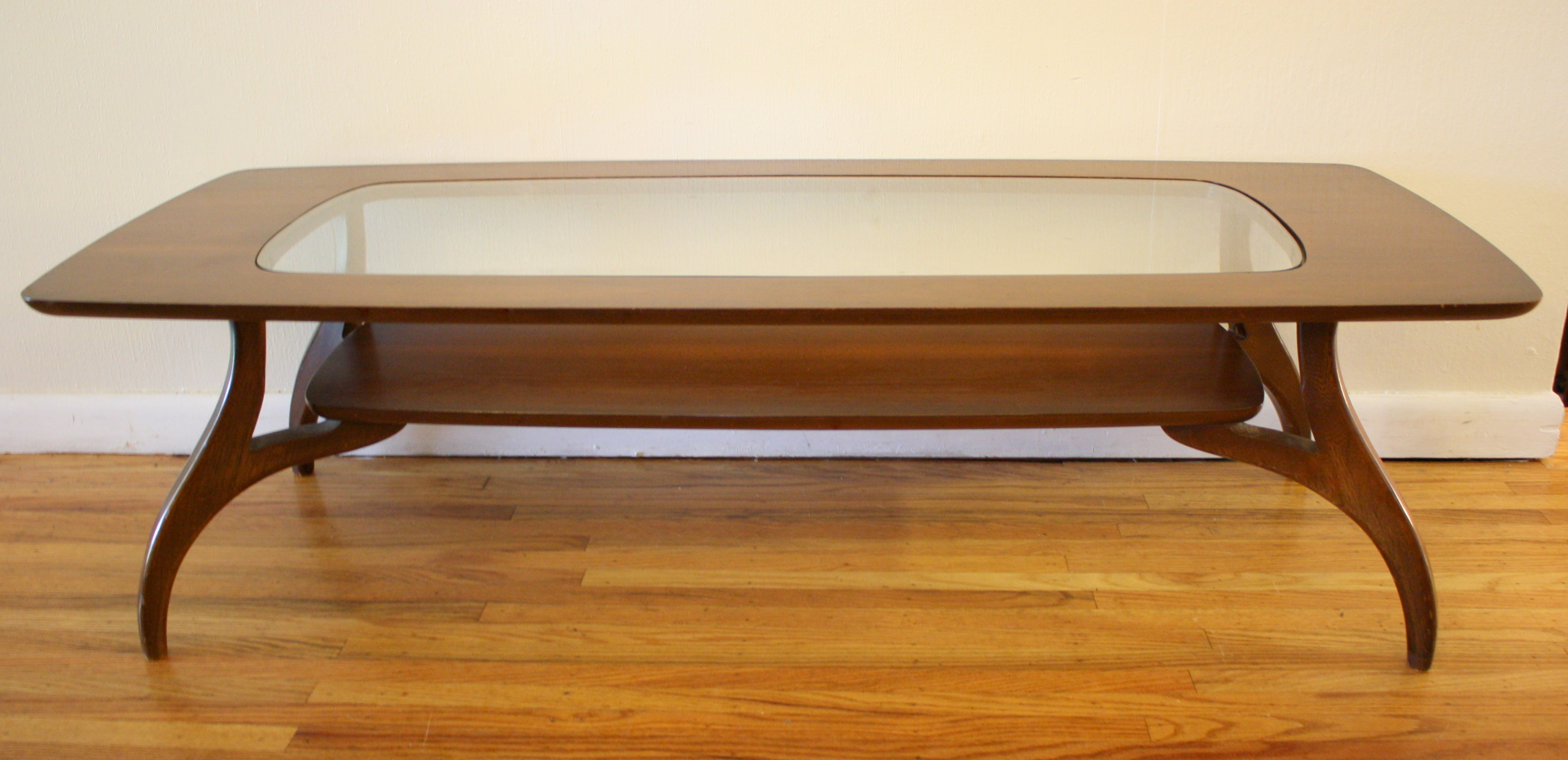 Bassett Coffee Table This is a mid century modern coffee table with a glass top and wood base. The wood base has a bottom shelf and beautiful sculpted legs. *SOLD* One comment on “Bassett Coffee Table” Christa on October 21st, 2014 - 10:53am This is just GORGEOUS. Oh, to get my hands on that… Reply Leave a Reply Cancel replyYour email address will not be published. Required fields are marked *Comment * Name * Email * Website Save my name, email, and website in this browser for the next time I comment.