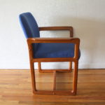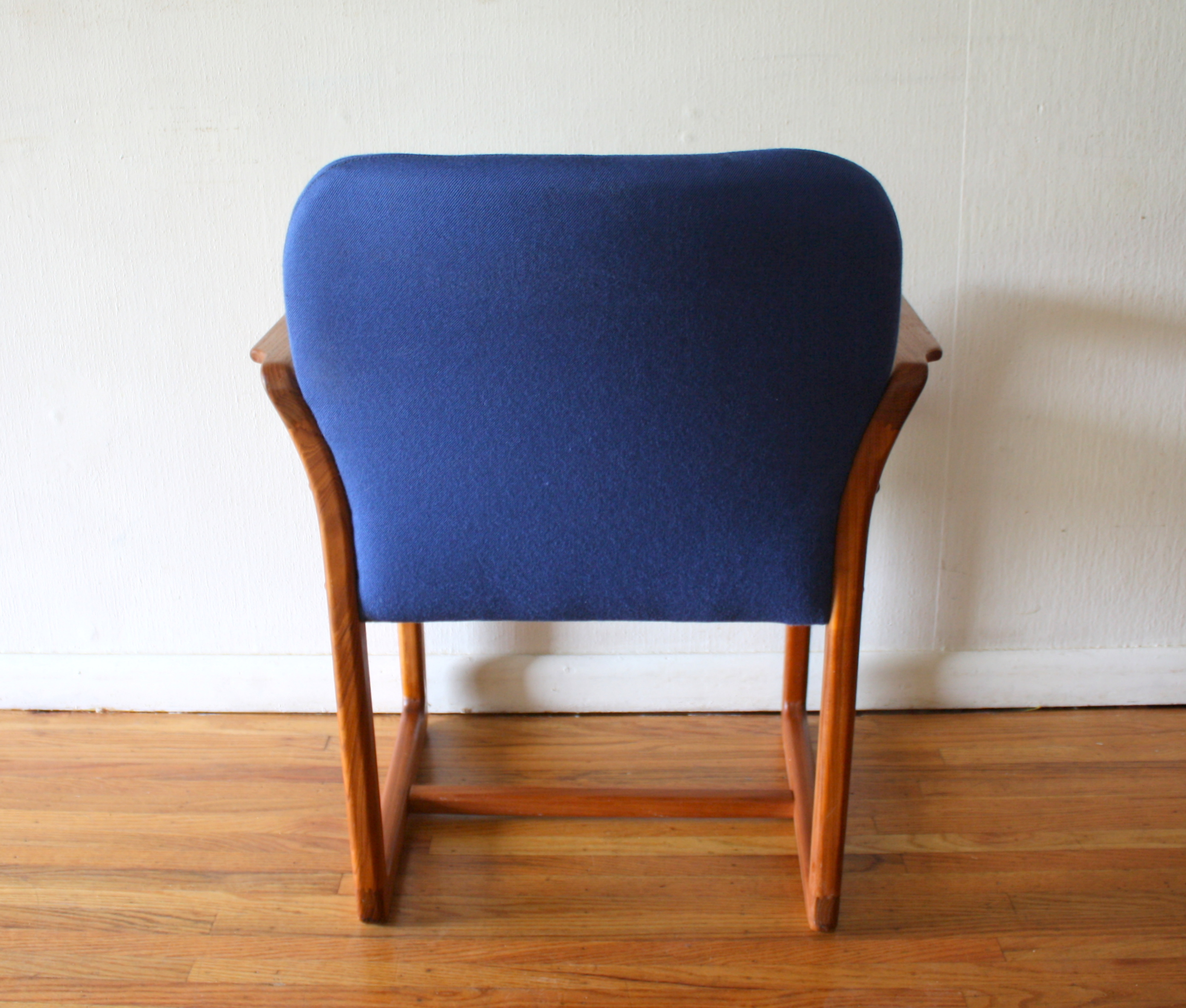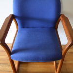 Mid Century Modern Teak Arm Chair This is a mid century modern Danish teak arm chair upholstered in cobalt blue. The chair has beautiful curves and carved arms. It is marked made in Denmark. Dimensions: 18.5″ seat width x 18″ seat depth x 18.5″ seat height x 32″ back height. *SOLD* Leave a Reply Cancel replyYour email address will not be published. Required fields are marked *Comment * Name * Email * Website Save my name, email, and website in this browser for the next time I comment.