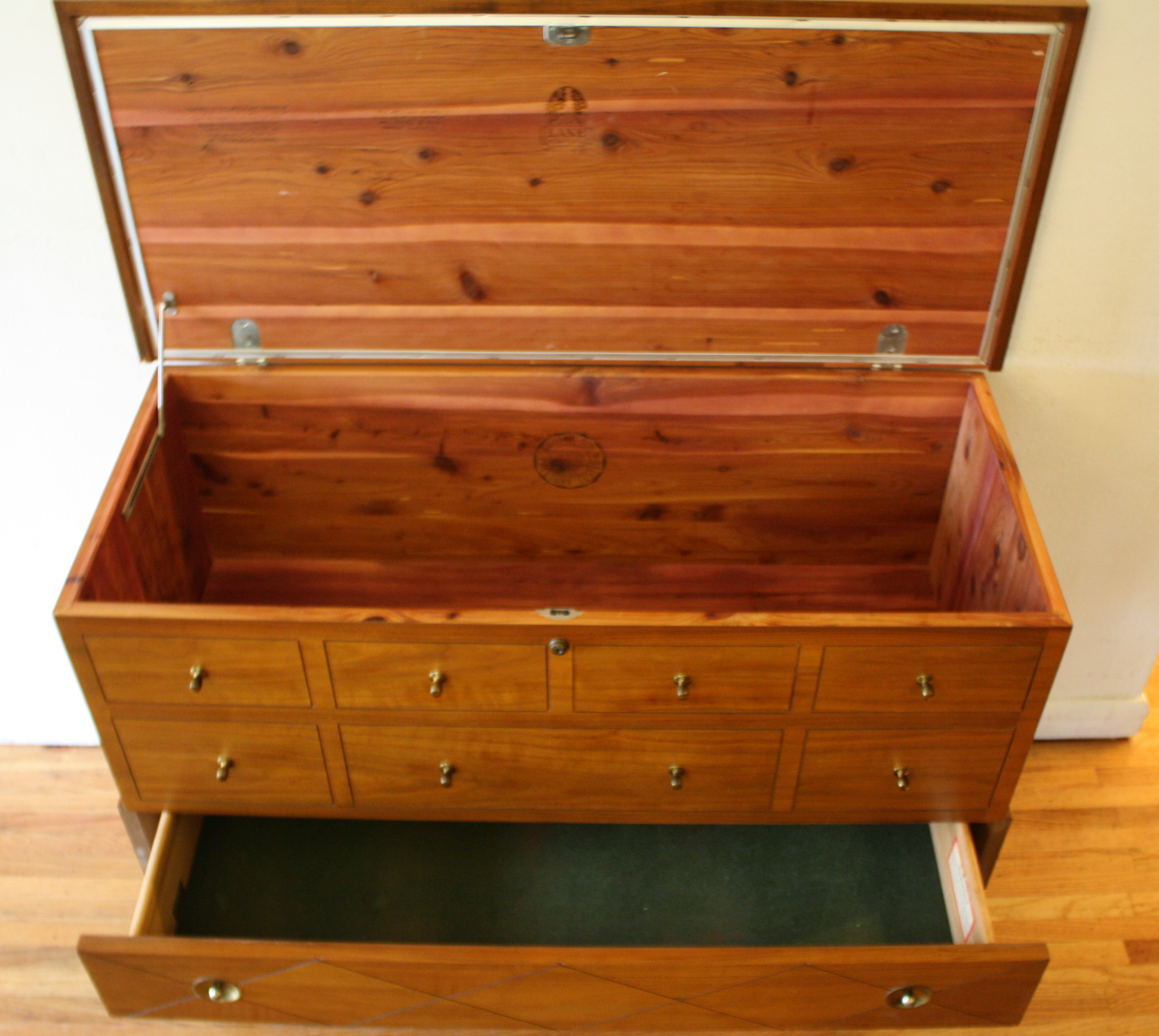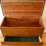 Mid Century Modern Cedar Chest Trunk by Lane This is a mid century modern cedar chest trunk by Lane. It is console height, has decorative brass knobs, 1 dovetailed drawer with brass pulls, and splayed legs. Dimensions: 43″W x 16.5″D x 20″H. *SOLD* Leave a Reply Cancel replyYour email address will not be published. Required fields are marked *Comment * Name * Email * Website Save my name, email, and website in this browser for the next time I comment.