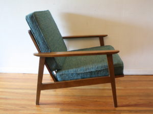 mcm arm chair with turquoise cushions 2