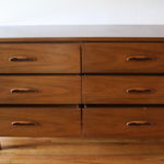 Mid Century Modern Low Dresser Credenza This is a mid century modern low dresser credenza with 6 dovetailed drawers with carved wood handle pulls. Dimensions: 54″W x 18″D x 30.5″H. *SOLD*