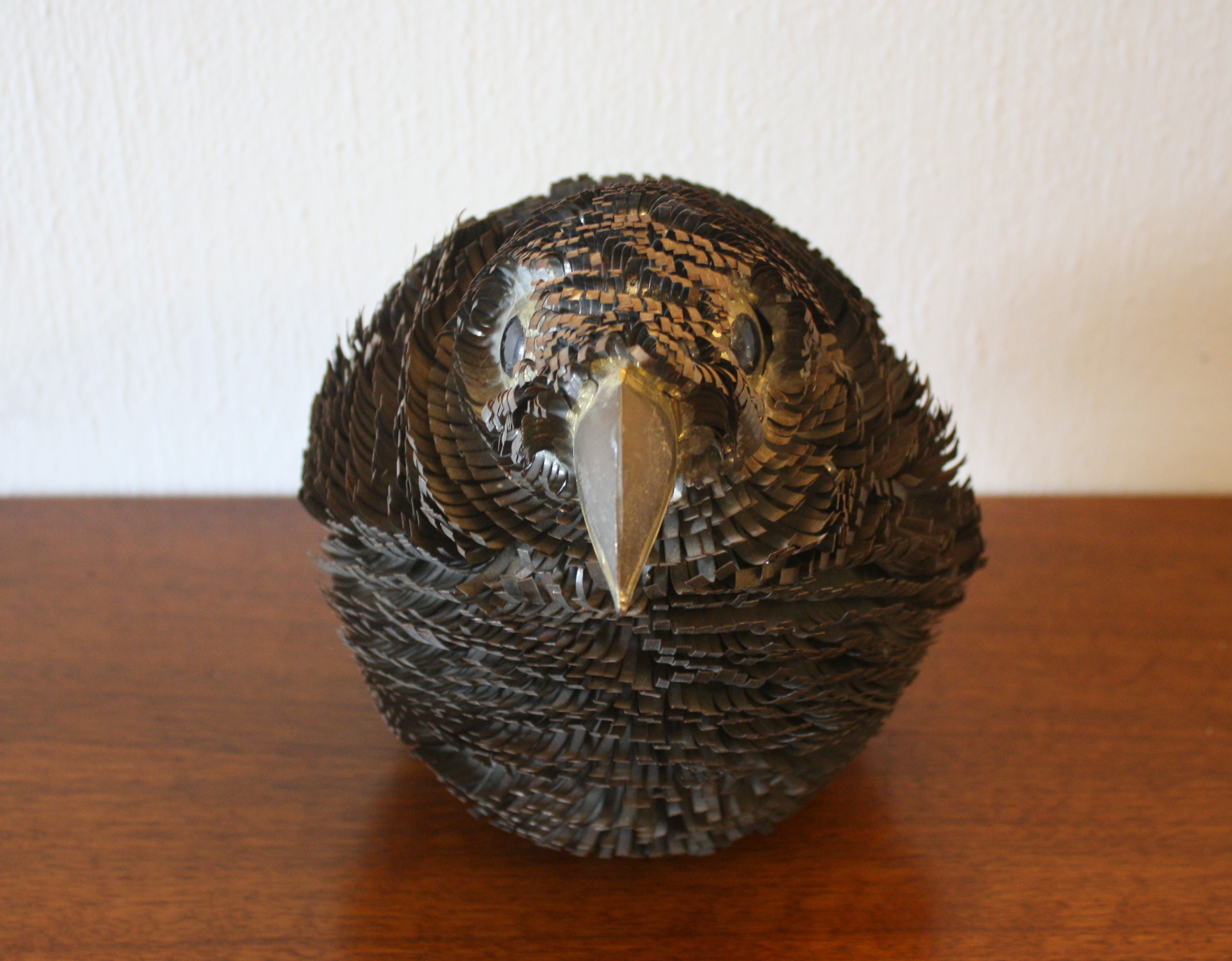 Mid Century Modern Brutalist Baby Owl Sculpture This is a mid century modern metal baby owl sculpture in the Brutalist style. Dimensions: 8″W x 6″D x 7″H. *SOLD*