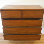 Mid Century Modern Tall Dresser by Harmony House This is a mid century modern tall dresser by Harmony House. It has 5 streamlined dovetailed drawers, and tapered legs. Dimensions: 41″W x 19″D x 42″H. *SOLD*