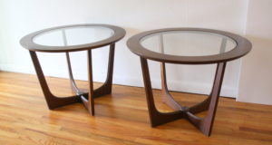 pair of Bassett round glass topped side tables 3