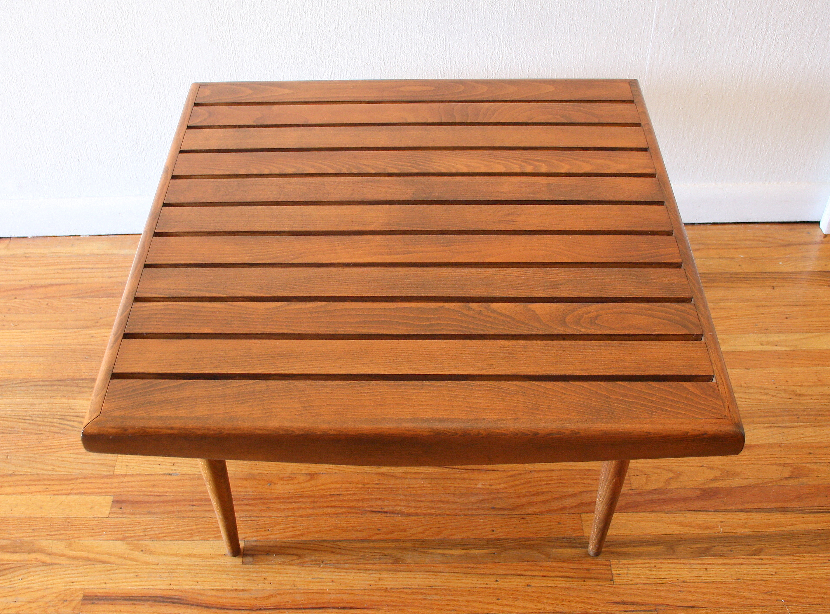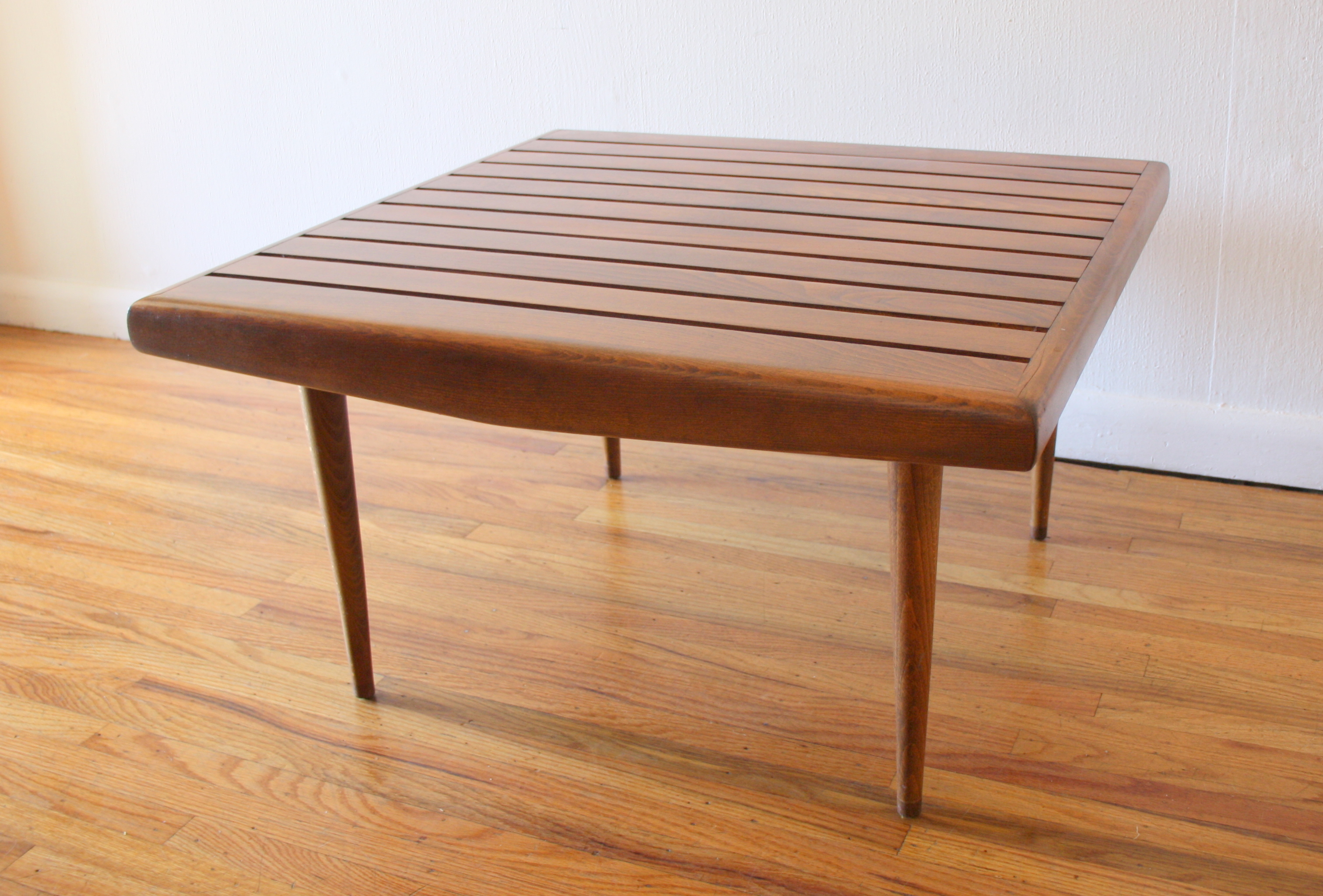 Mid Century Modern Adrian Pearsall Style Slatted Coffee Table This is an Adrian Pearsall style mid century modern square slatted coffee table with tapered legs: 28″W x 28″D x 15.5″H. 1 Adrian Pearsall style coffee table: $450