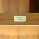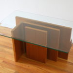This is a mid century modern Danish teak coffee cocktail table designed by Gustav Gaarde for Trekanten. It has a beautiful sculpted teak base and glass top. It is marked made in Denmark on the bottom of the table. Dimensions: 30″W 20″D x 17″H.