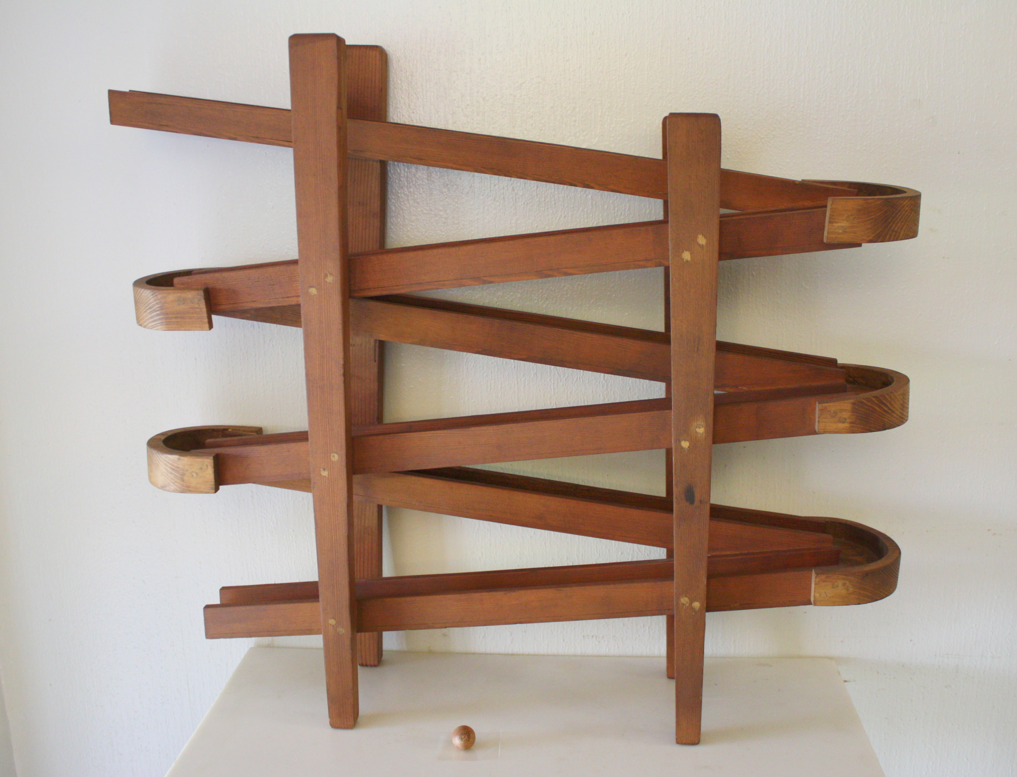 This is a vintage marble roller made of solid wood, including a wooden ball. Dimensions: 29″W x 6″D x...