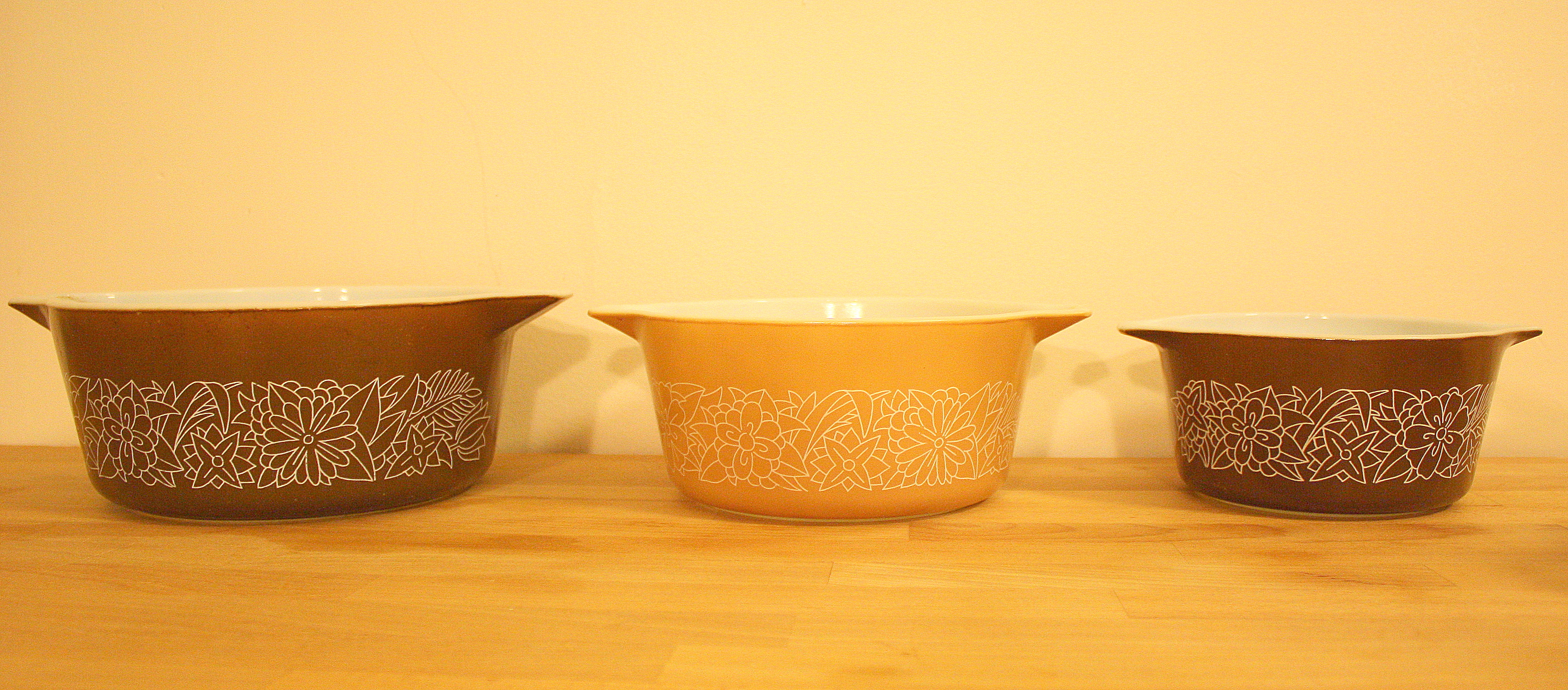 These are 3 sets of vintage Pyrex bowls. Each individual set has 3 bowls that fit inside of each...