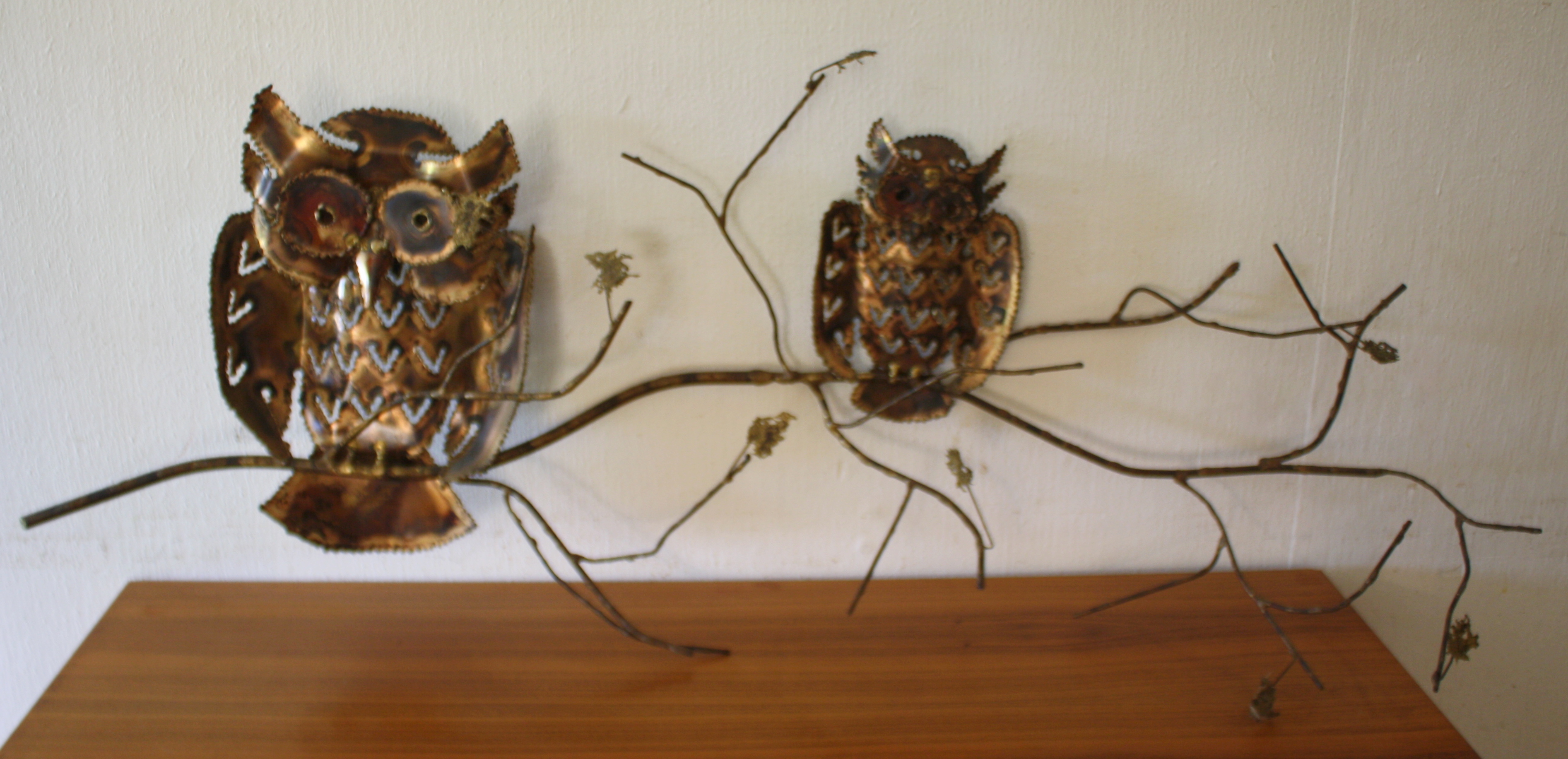 This is a mid century modern Brutalist wall hanging sculpture art piece. It is a flock of birds in...