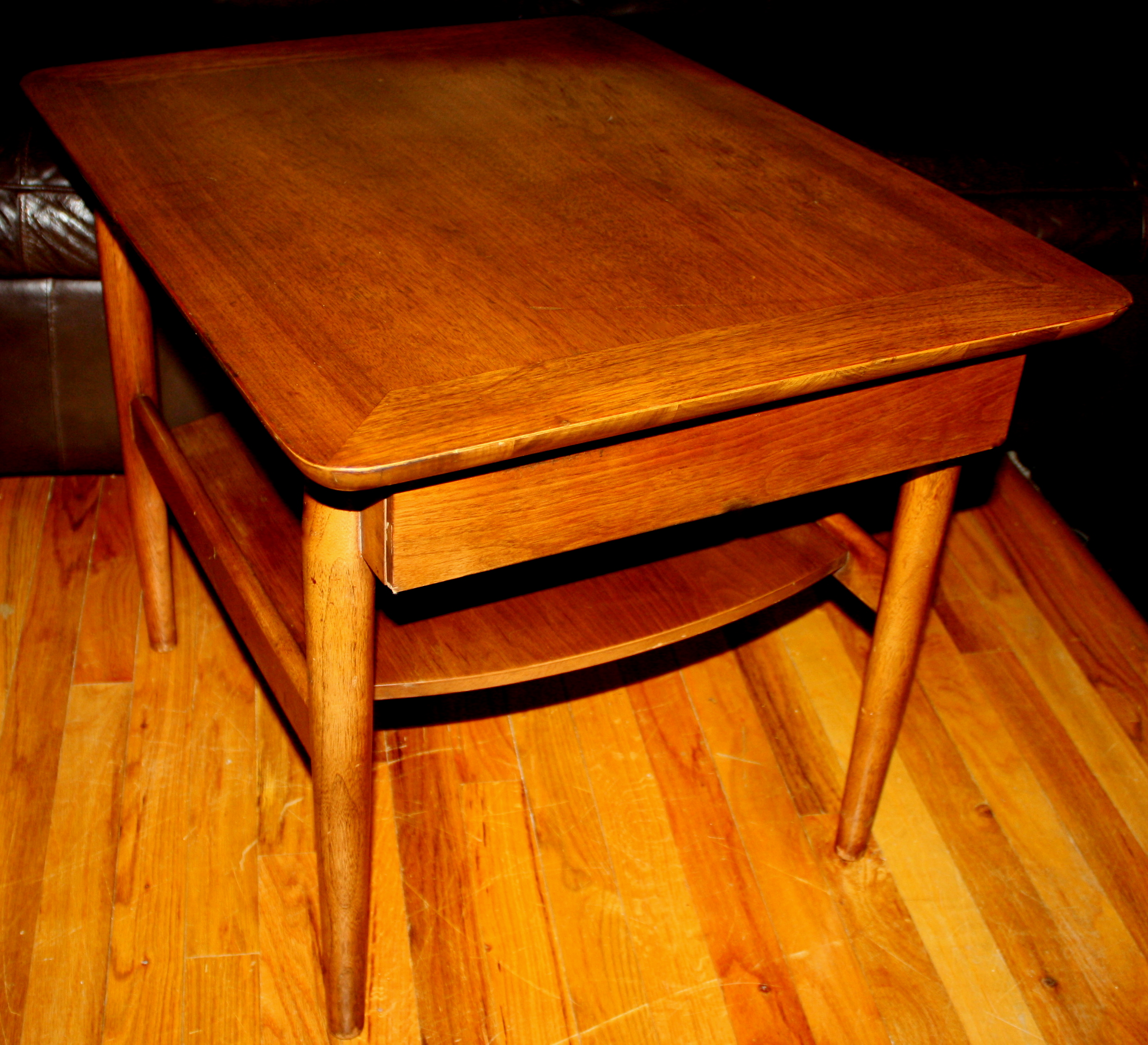 This is a mid century modern side end table from American by Martinsville. It is made of solid wood,...