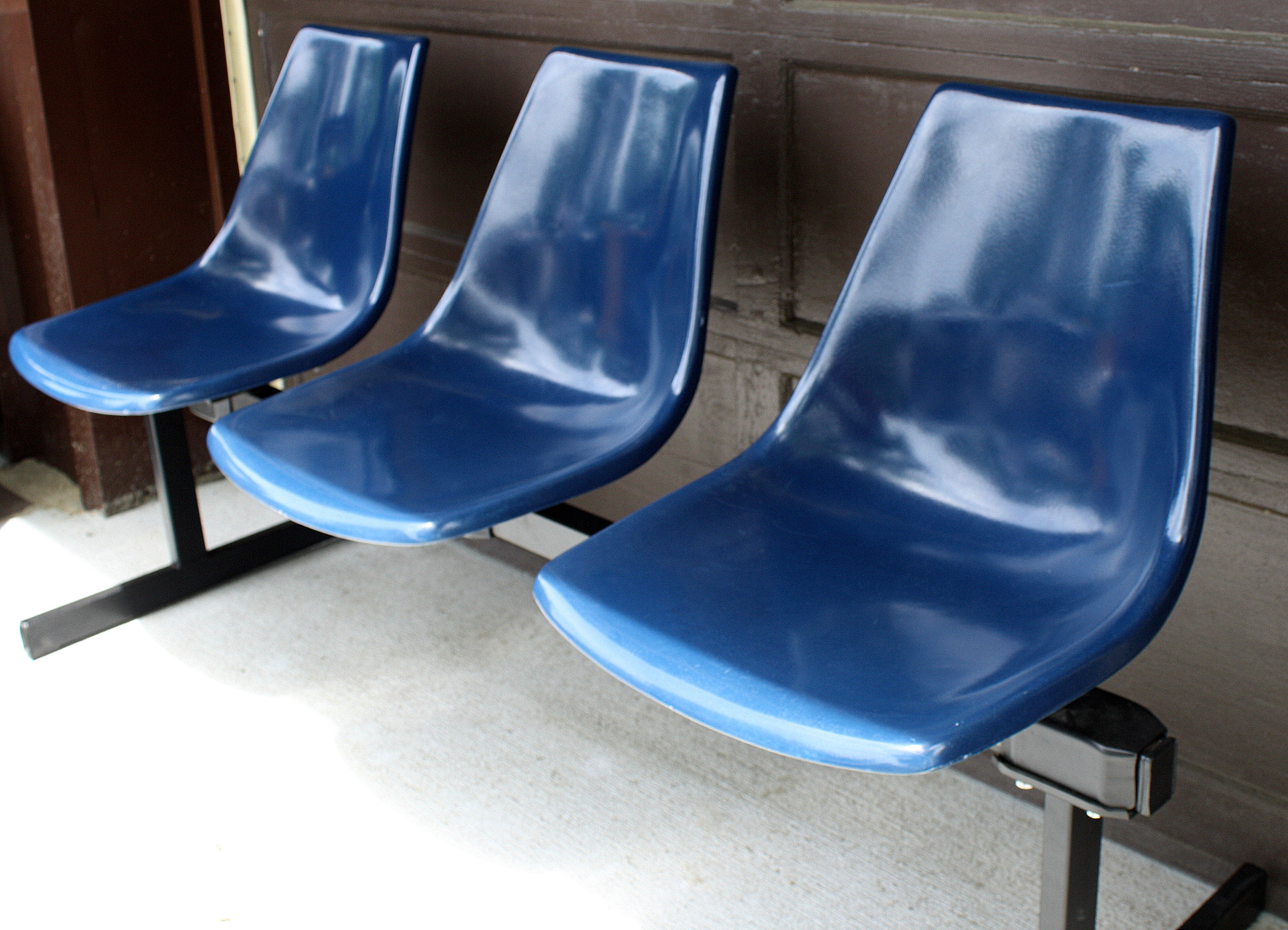 This is a mid century modern fiberglass bench by Krueger. The cobalt colored seats have that great curve in...