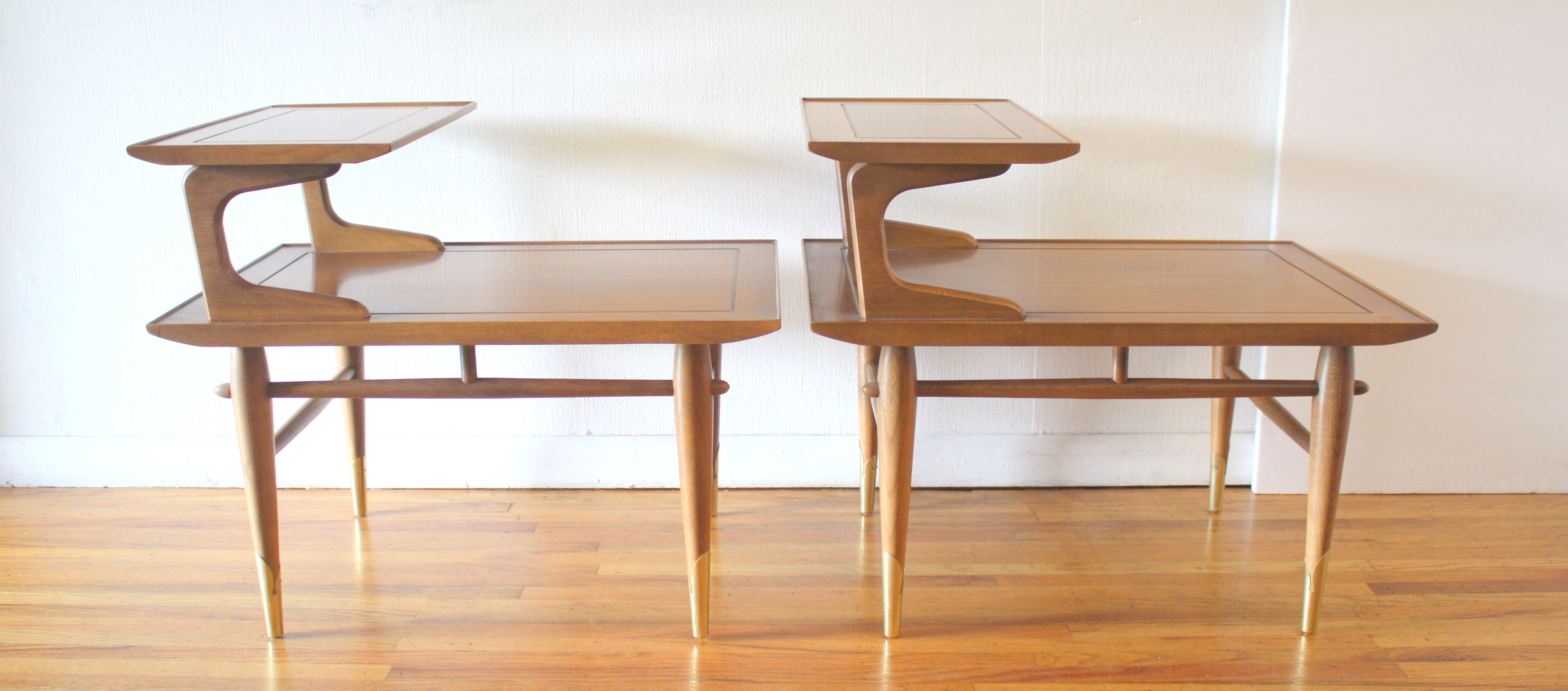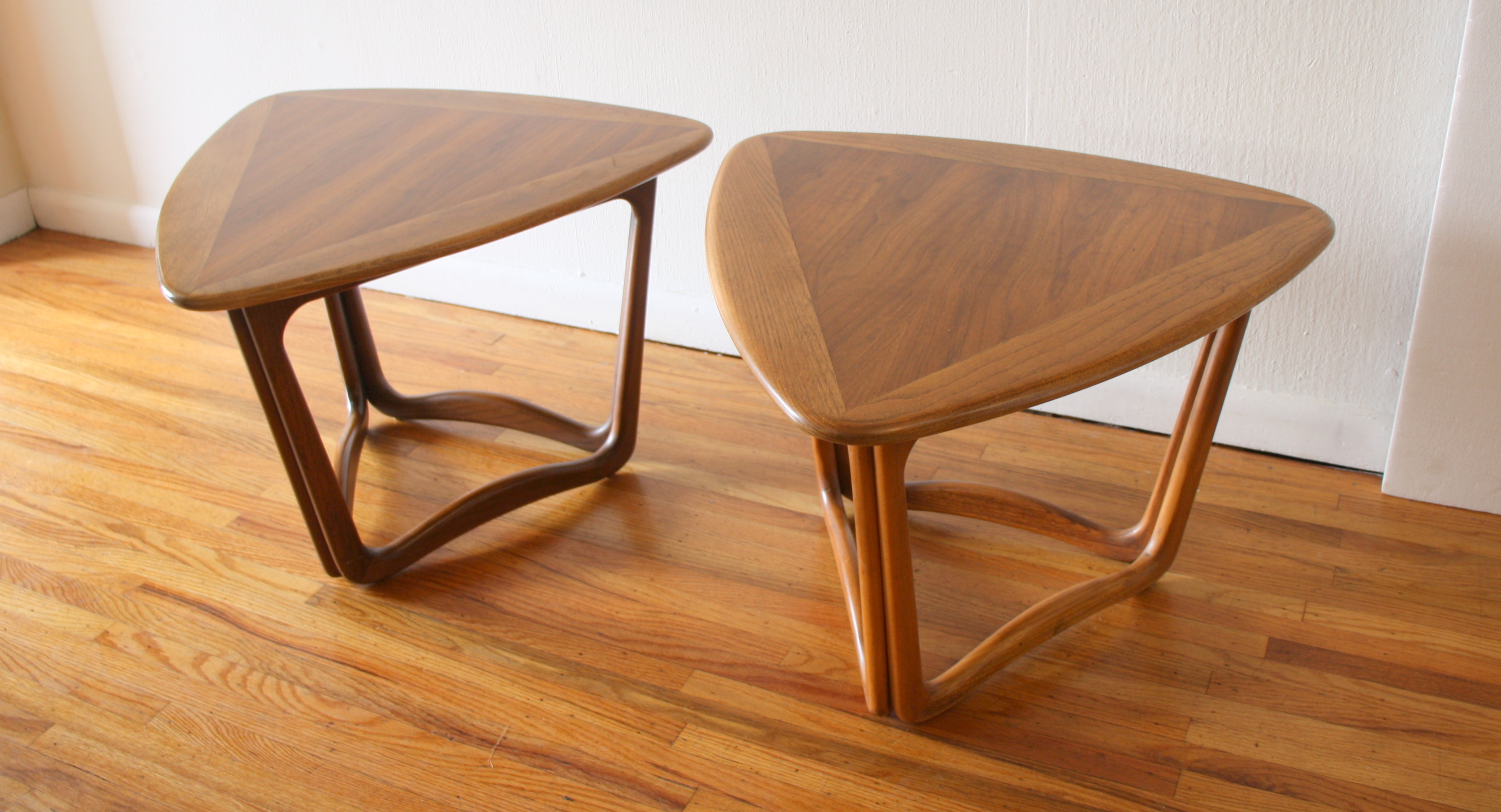 This is a pair of mid century modern tables by Lane from their Copenhagen series. They have their signature...