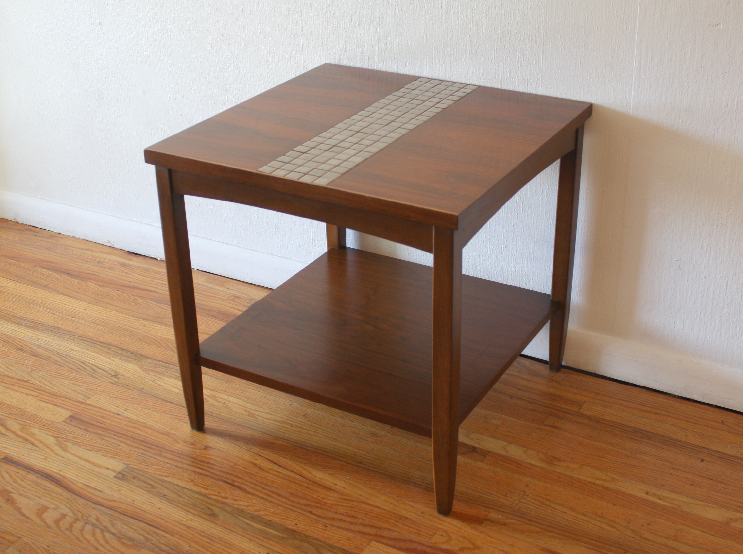 This is a mid century modern side end table by Lane. It has a cool gray tile accent on...