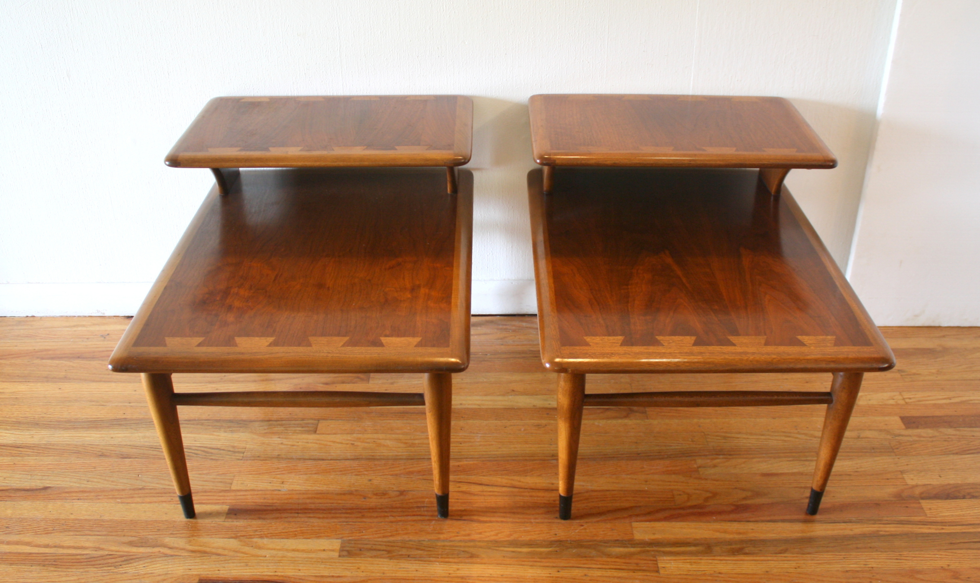 This is a pair of 2 tiered side end tables from the Lane Acclaim Series designed by Andres Bus....