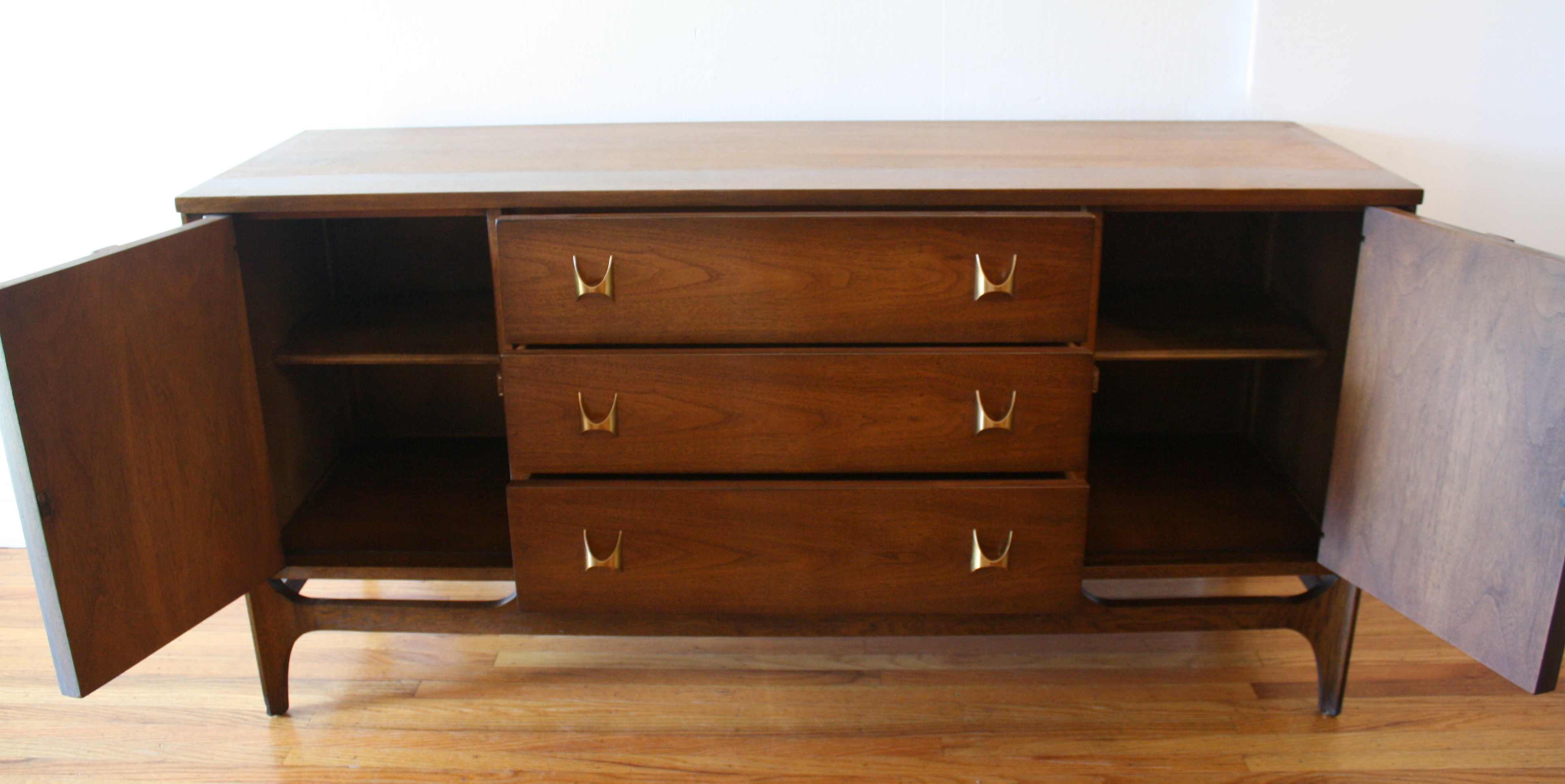 This is a mid century modern credenza from the Broyhill Brasilia collection. The dual side cabinets have their signature...