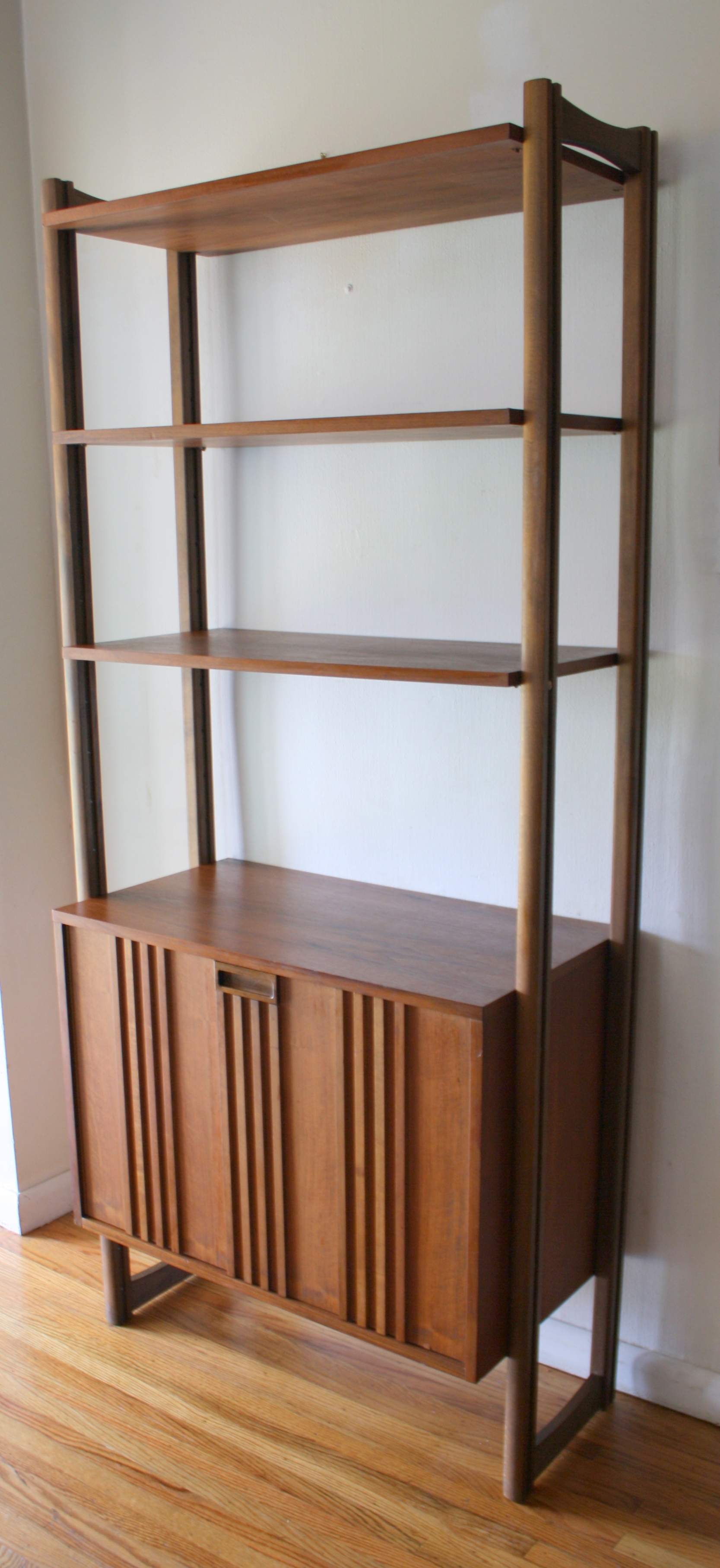This is a mid century modern Danish modular bookshelf. The shelves can be height adjusted as well as the...