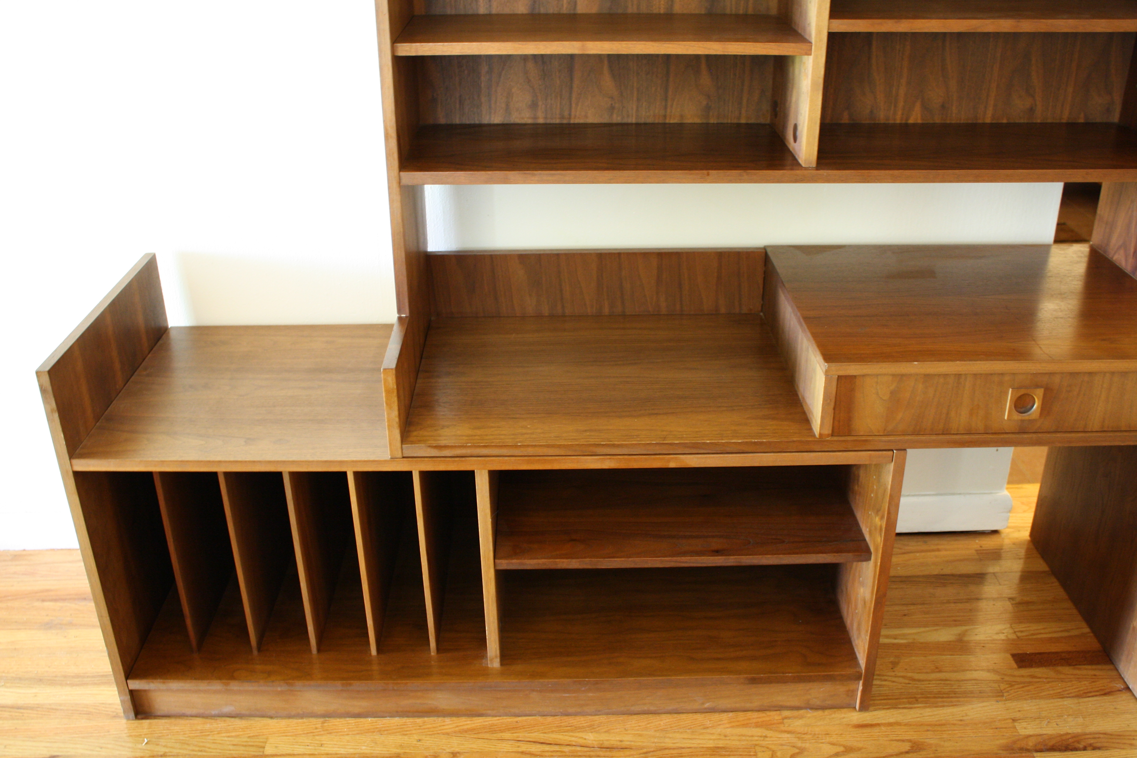 This is a mid century modern expanding media bookcase desk unit. One of the coolest pieces we have had...