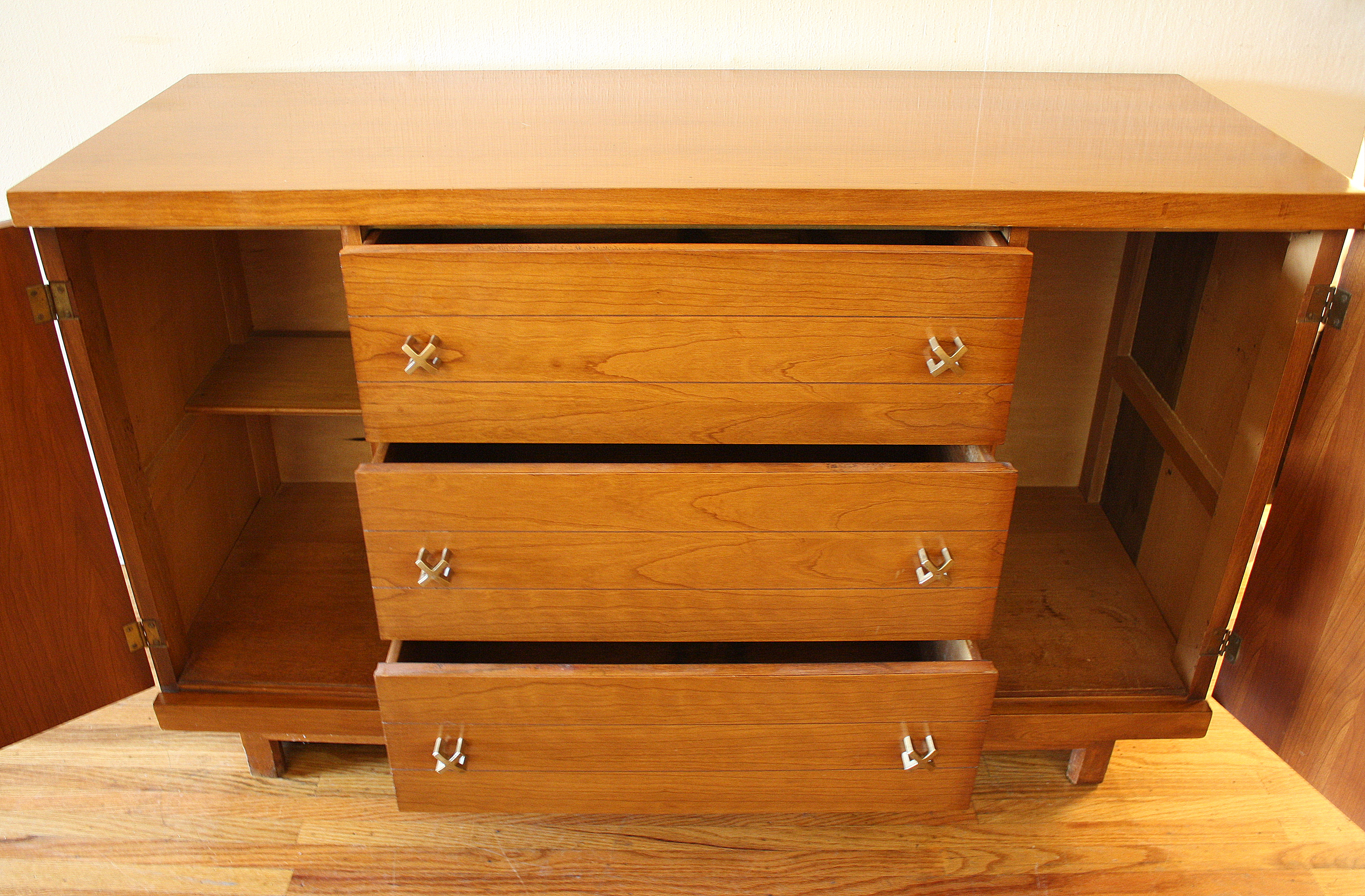 This is a mid century modern dressers by Bassett. It has 4 dovetailed drawers with very cool streamlined drawer...