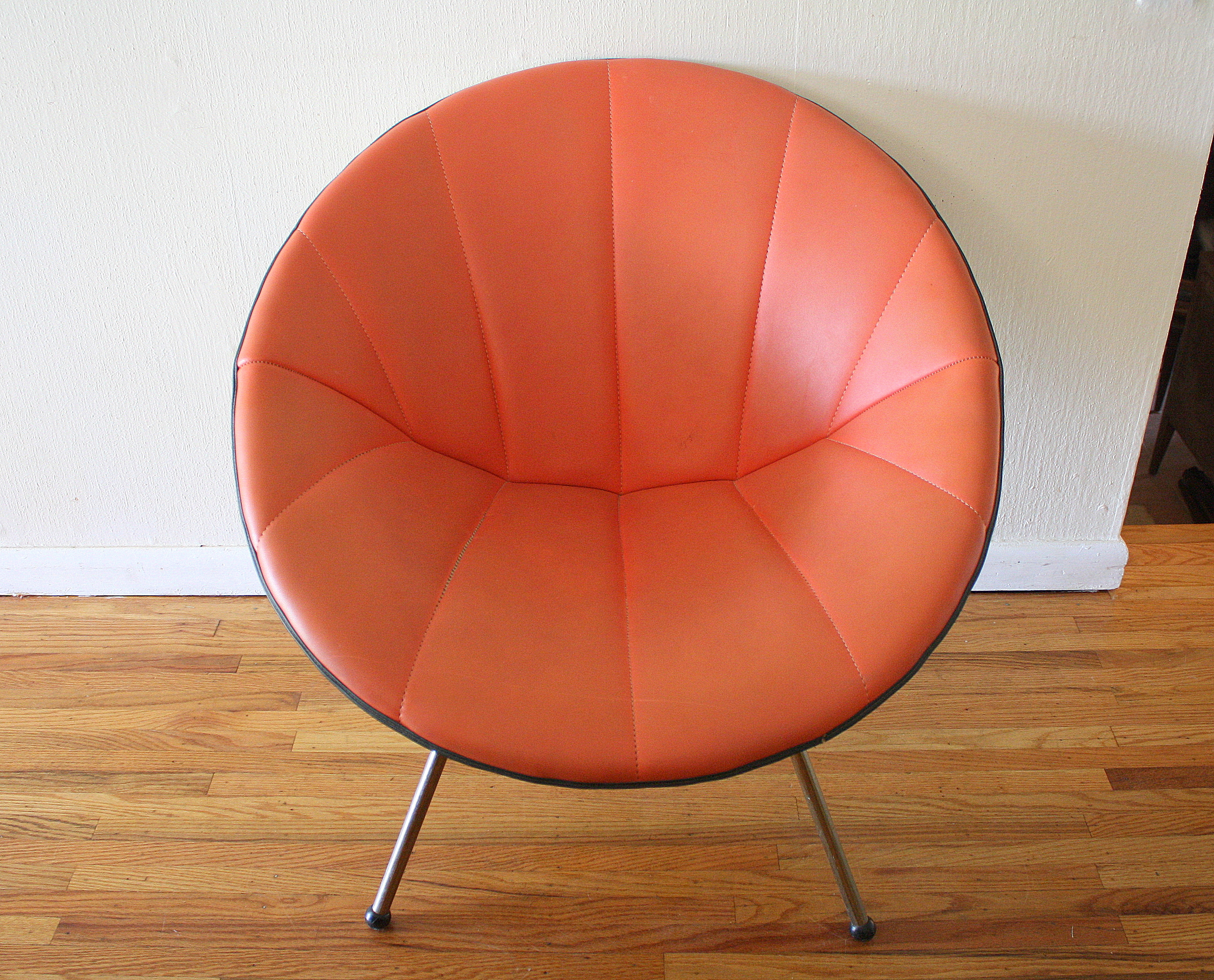 This is a mid century modern original Zori Saucer chair upholstered in orange naugahyde. It has a great atomic...