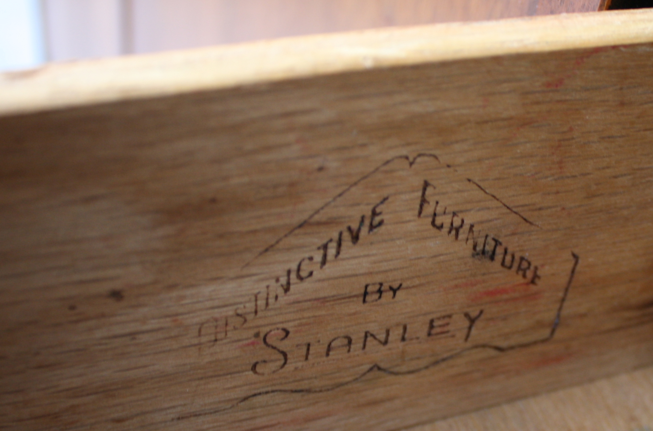 This is a mid century modern credenza made of solid wood by Stanley. It has a formica top and...