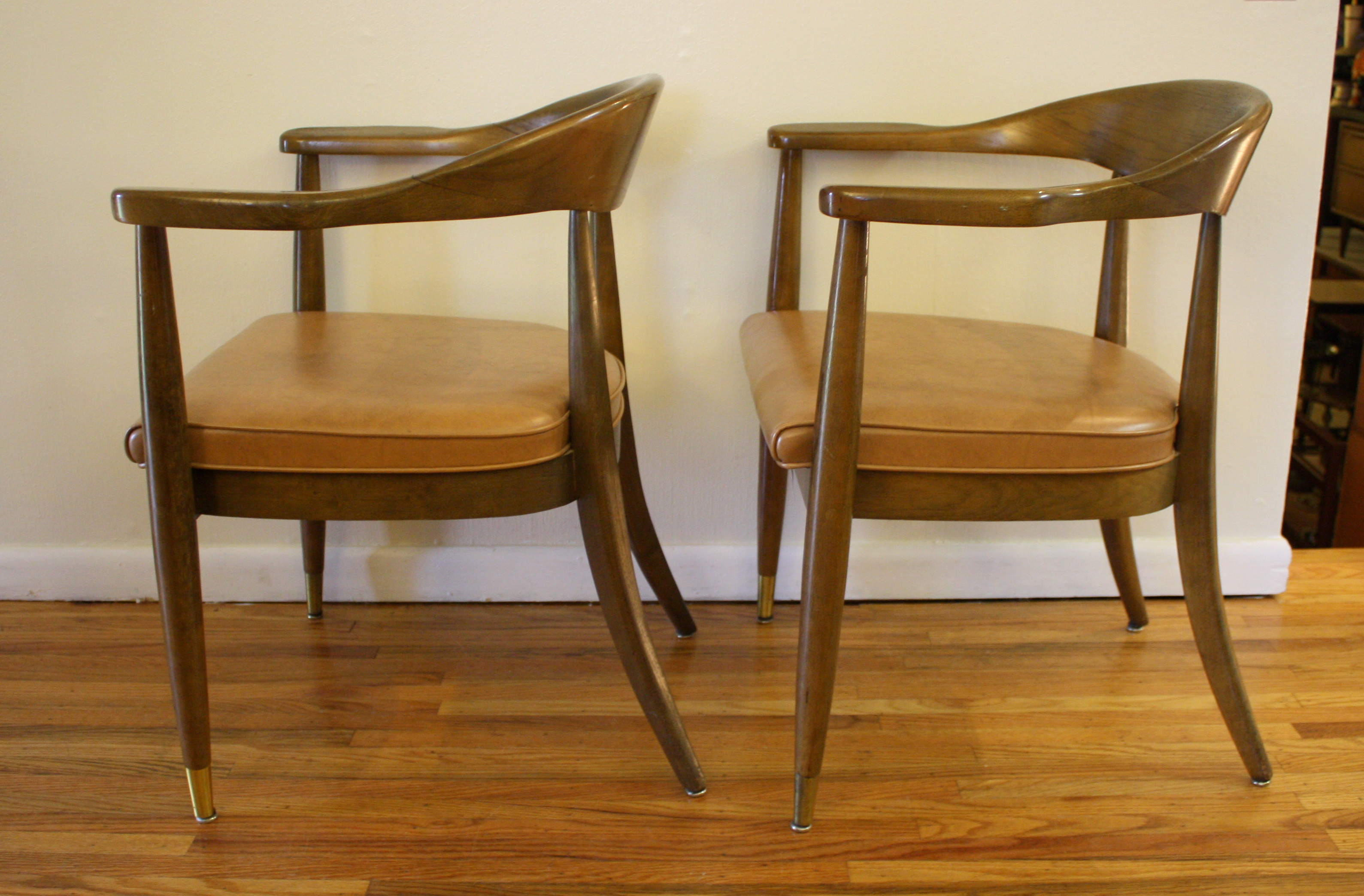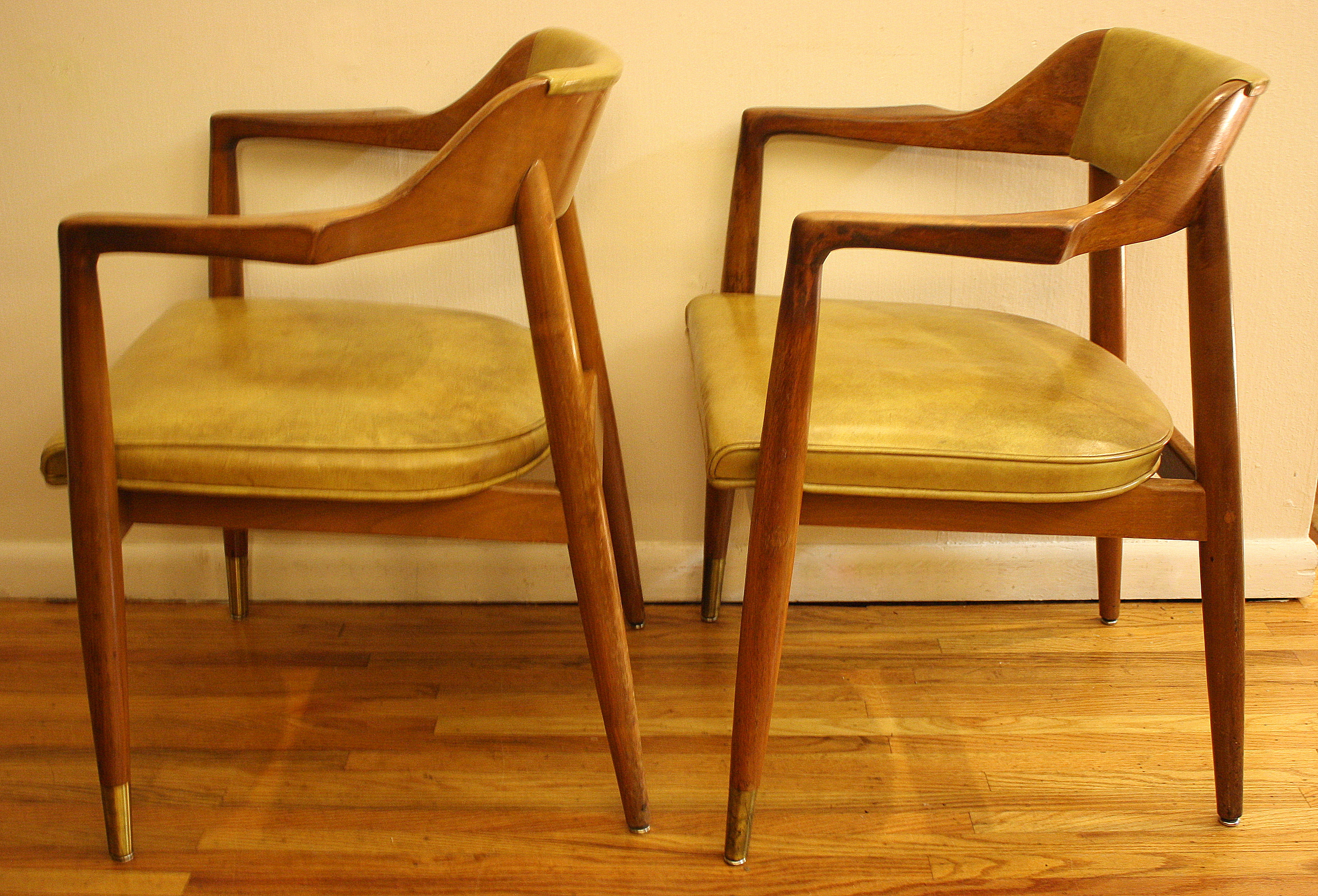 These are mid century modern Gunlocke chairs. The frames are solid wood and they are upholstered in naugahyde. There...