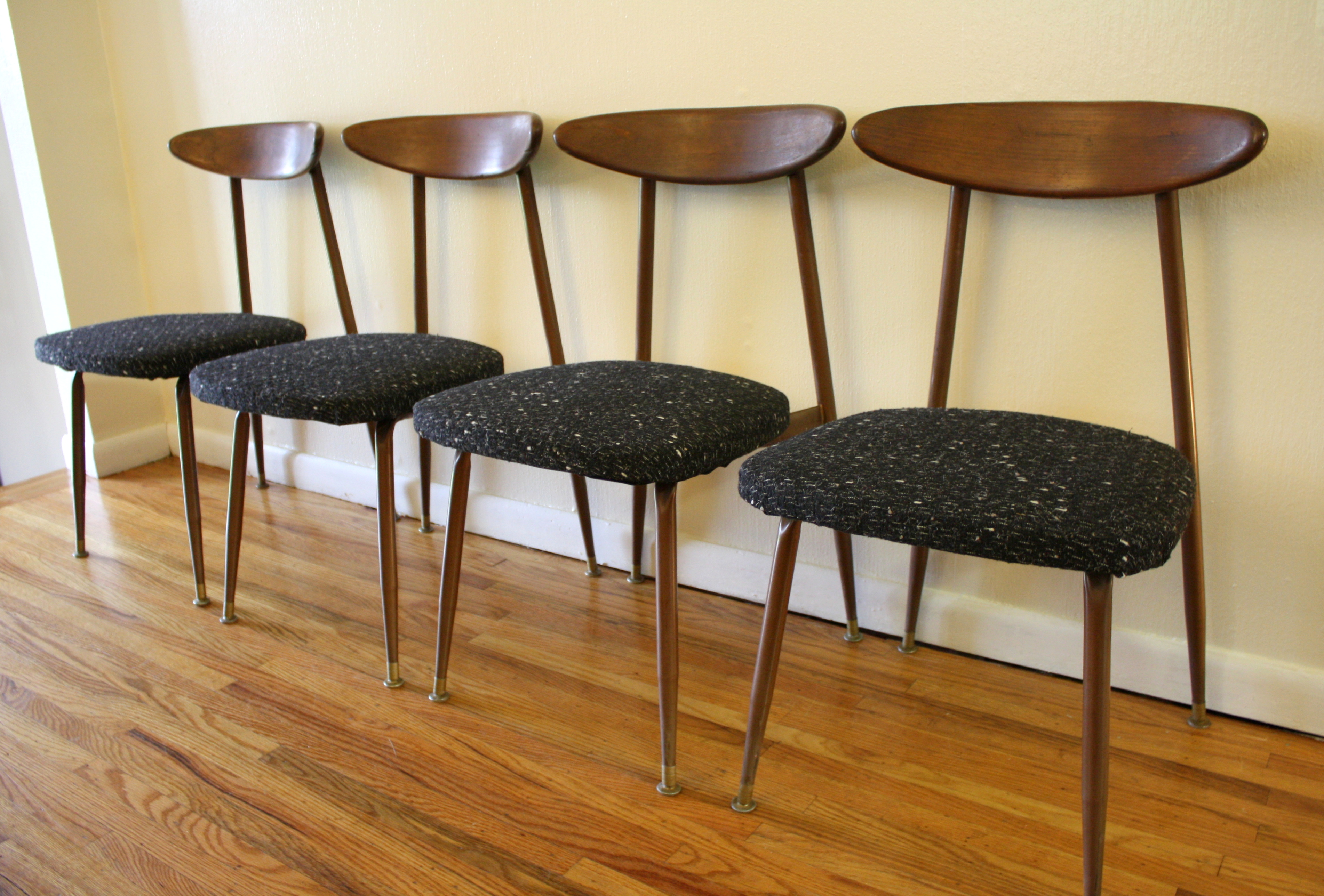 This is a set of 4 mid century modern chairs by Viko. It has mcm solid wood curved backs...