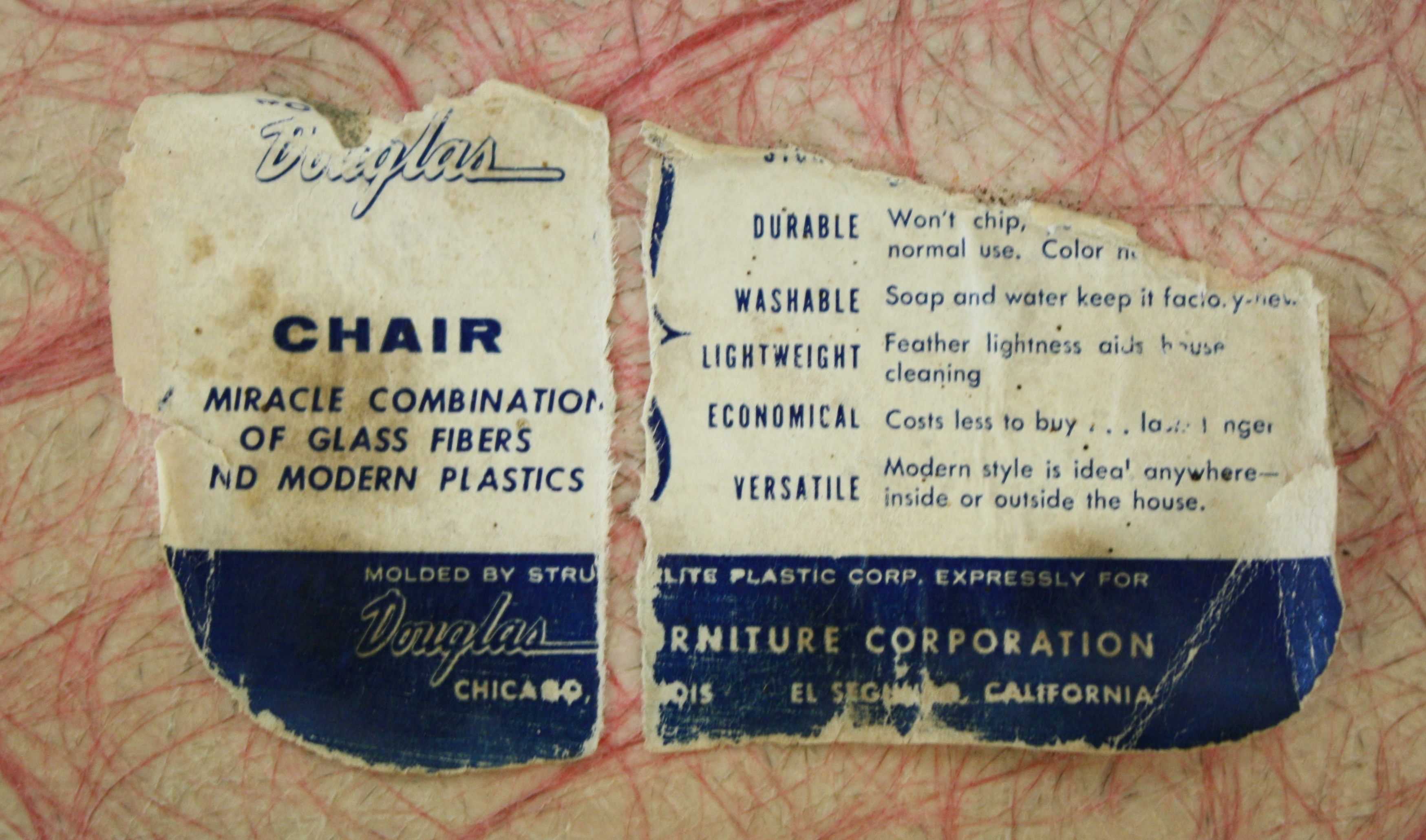 This is a mid century modern Eames Miller style chair by Douglas. It is made of fiberglass and has...