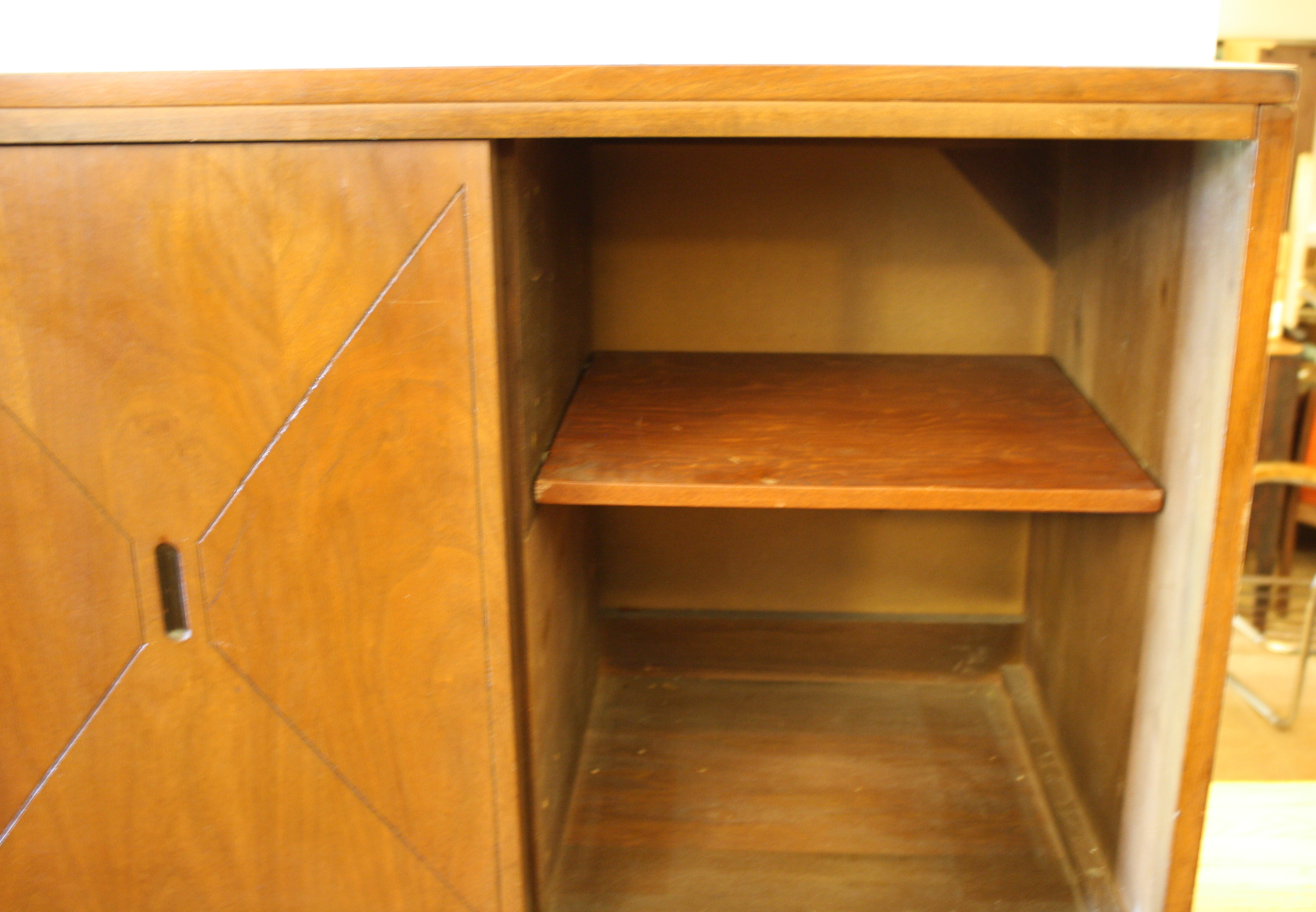 This is a retro tall cabinet made of solid wood. It has an mid century modern emblem design on...