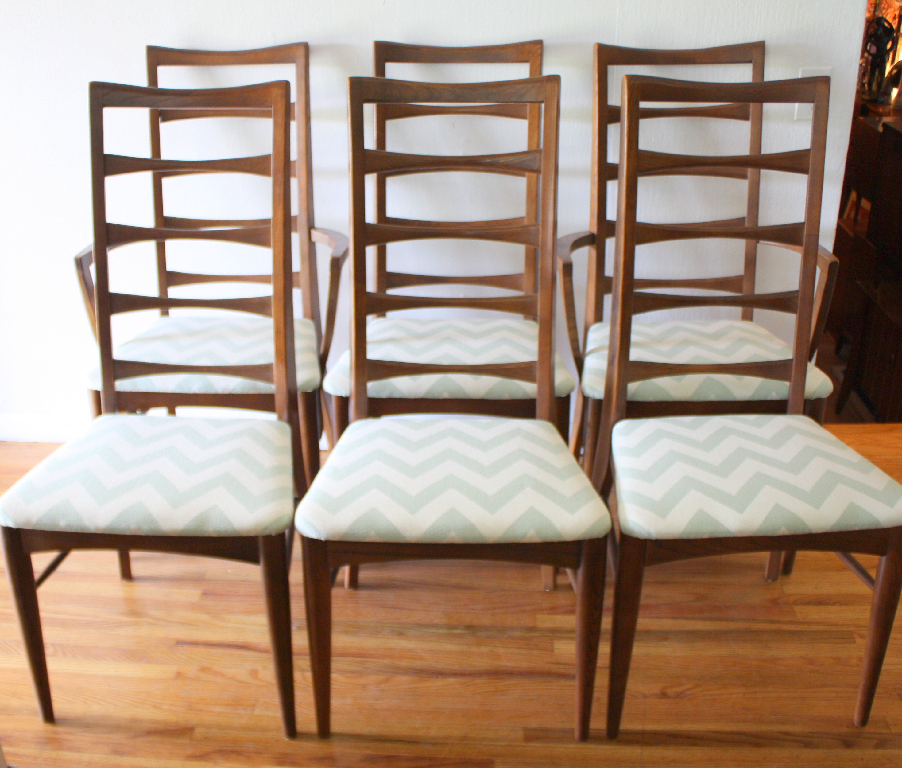 These are 2 mid century modern dining chair sets. The first set is a set of 6 chairs with...