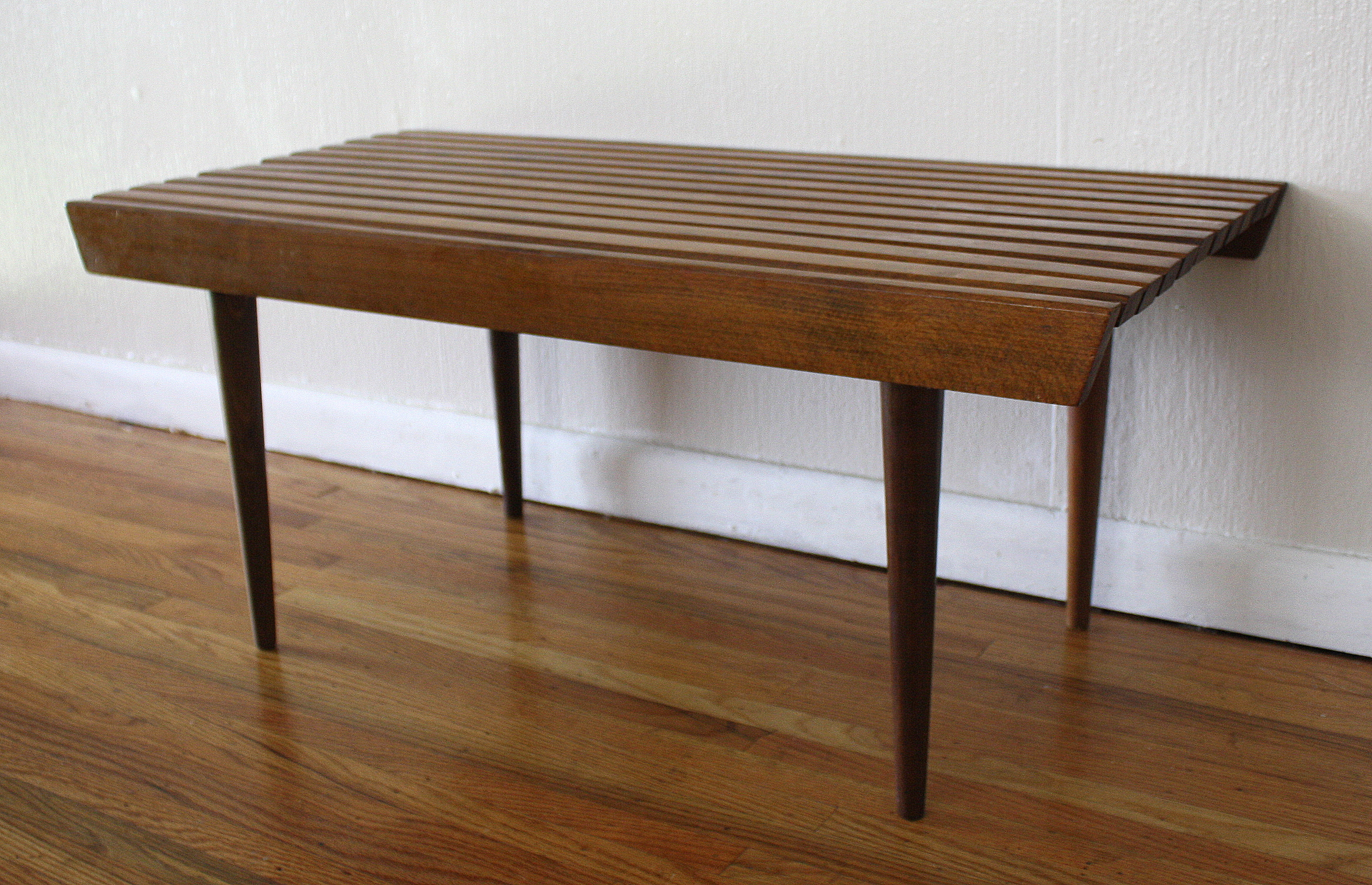 This is a mid century modern slatted wood bench. Great as a bench or a small coffee table, this...