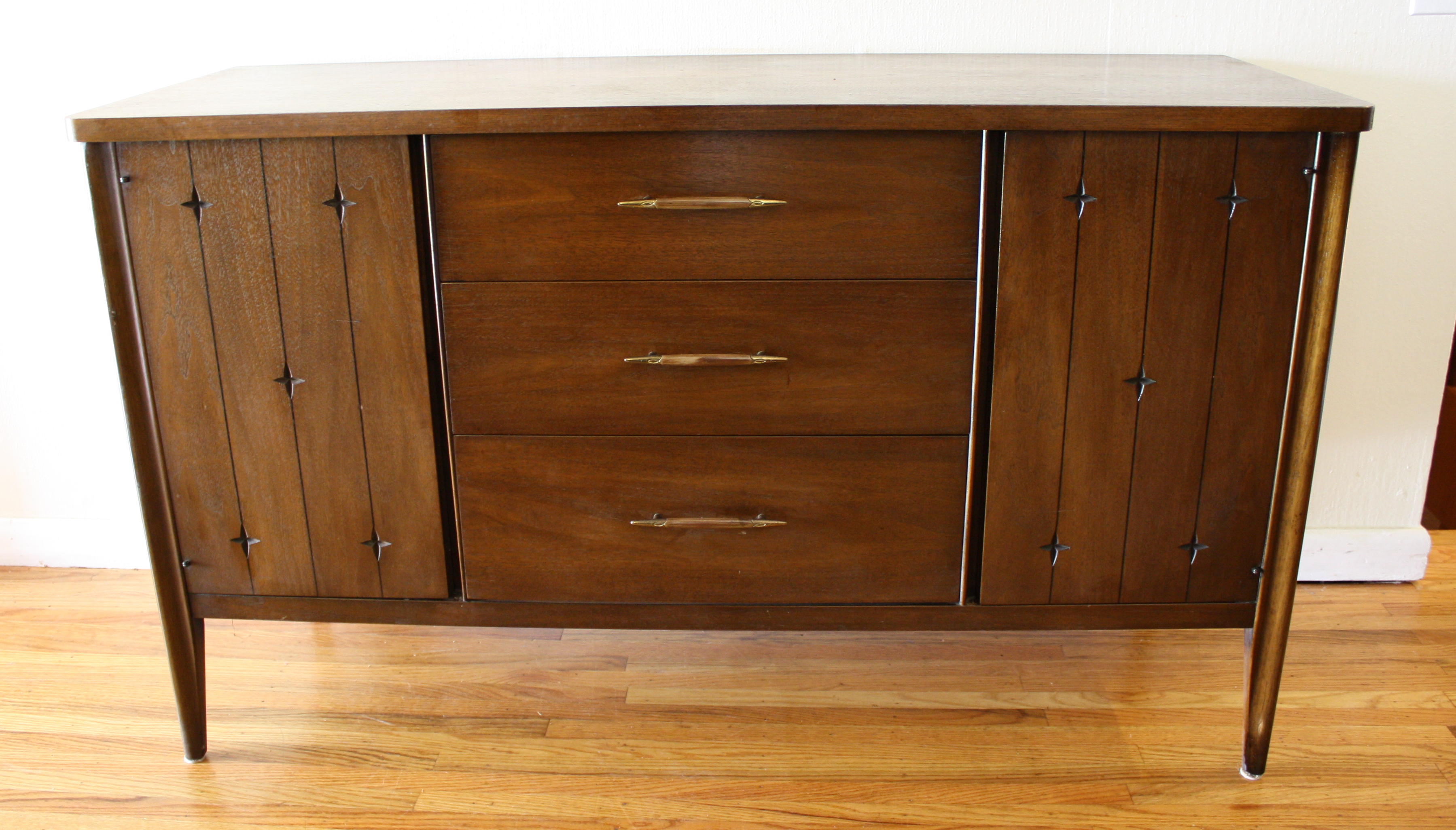 This is a mid century modern credenza from the Broyhill Saga collection. It has 3 dovetailed drawers and 2...