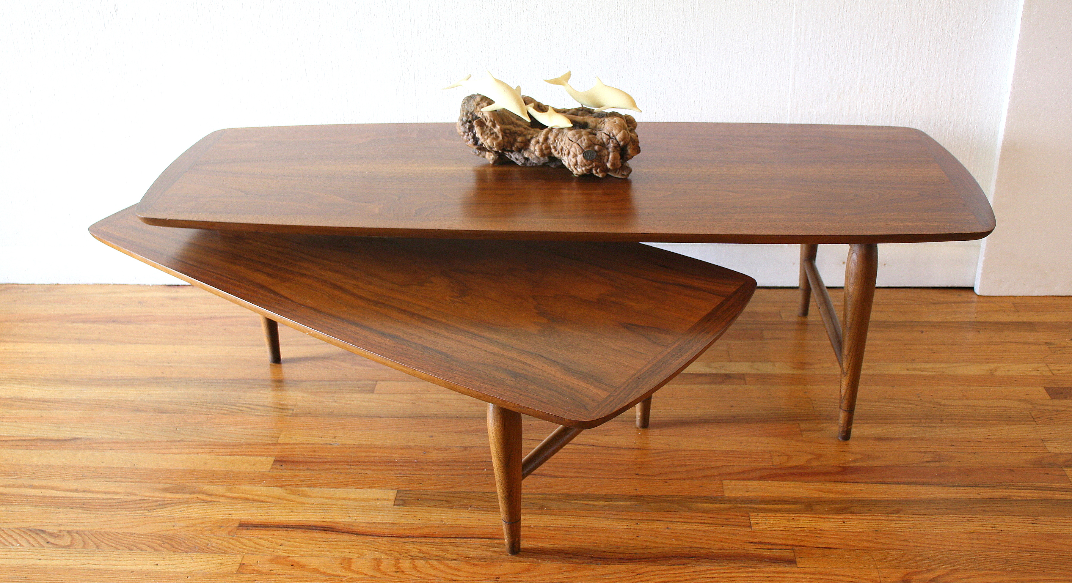 This is a mid century modern boomerang surfboard coffee table with tapered legs. The bottom tier slides out to...