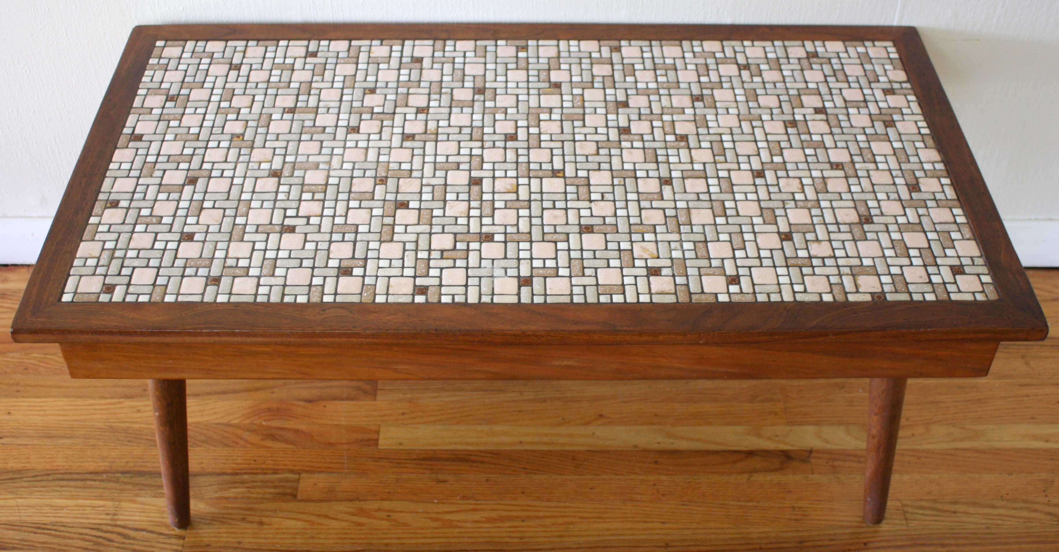 This is a mid century modern coffee table with beautiful retro tile work. It is made out of solid...