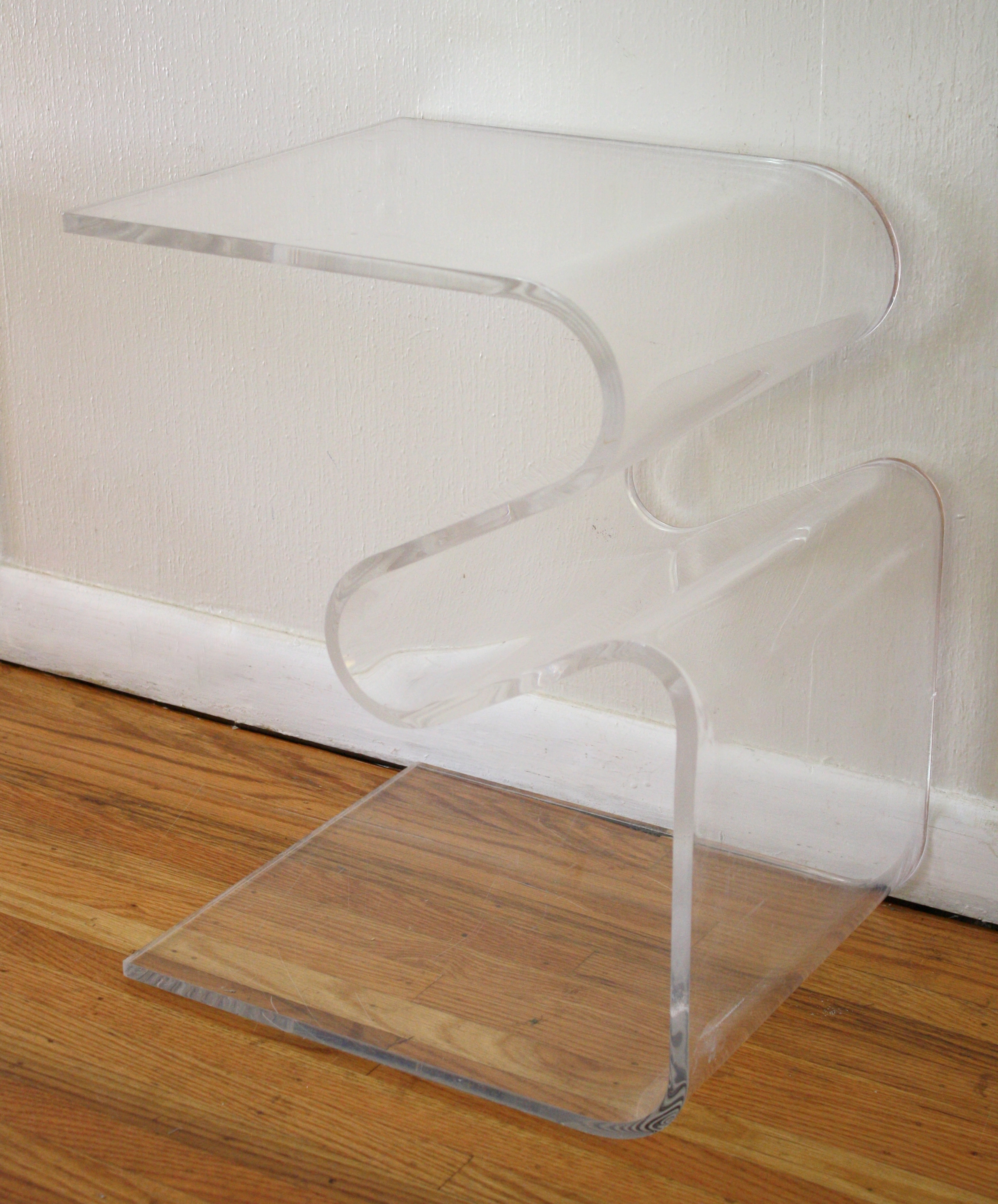 This is a mid century modern coffee table made out of lucite. Very cool look with two built in...